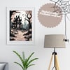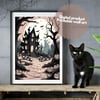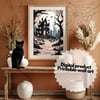 A digital file for printing; .Halloween creepy castle poster decoration for party night. Printable wall art and invitation