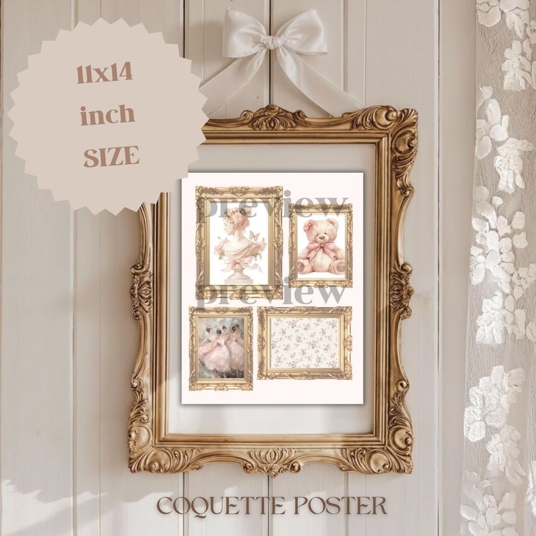 Coquette Gold Frame Collage Poster – Digital Download
