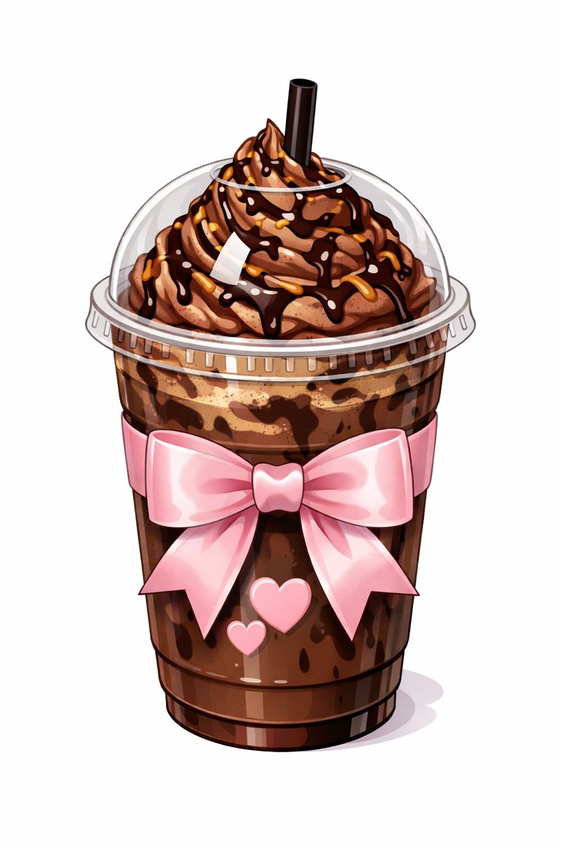 Treat yourself to the charming Coffee Croquette with Bow, Ribbon, and Hearts clipart. This design features an iced chocolate espresso topped with whipped cream, a rich swirl of chocolate and caramel drizzle, and a playful pink satin bow. With two heart accents that match the ribbon, it’s the perfect touch for any project, whether it’s a cozy planner, a self-care journal, or a gift card. Add a little sweetness and style to your creations with this adorable, coffee-inspired clipart, designed to bring warmth and joy to your work.
