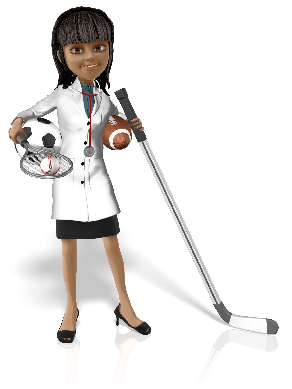 Dr. Kim holds a bunch of different sports gear. This clip-art can represent a doctor who deals with sports related injuries.