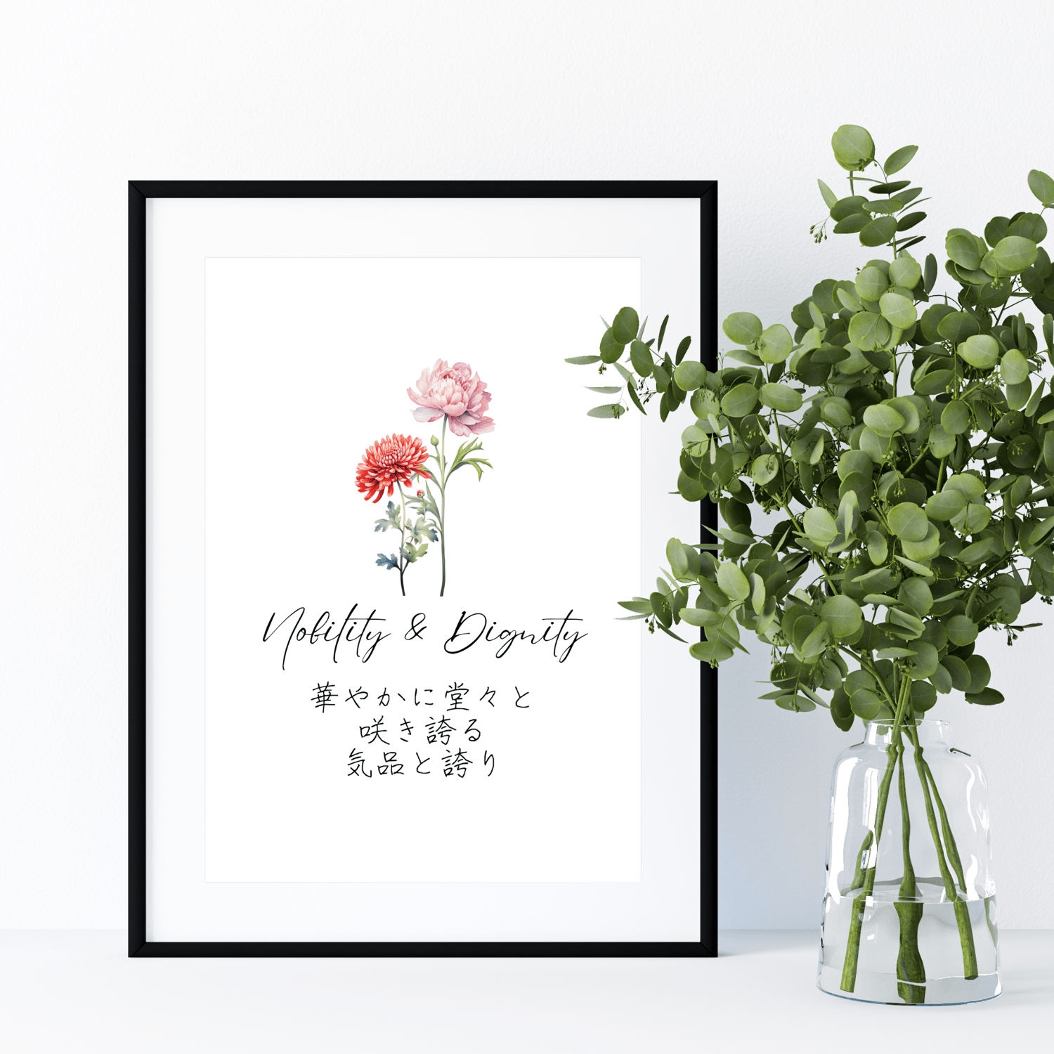 Celebrate the richness of November with my frameless art print, showcasing the delicate beauty of peony and chrysanthemum in vibrant watercolor. Paired with Japanese poetry about dignity and grace, this piece captures the essence of the season and the spirit of those born under its sign.