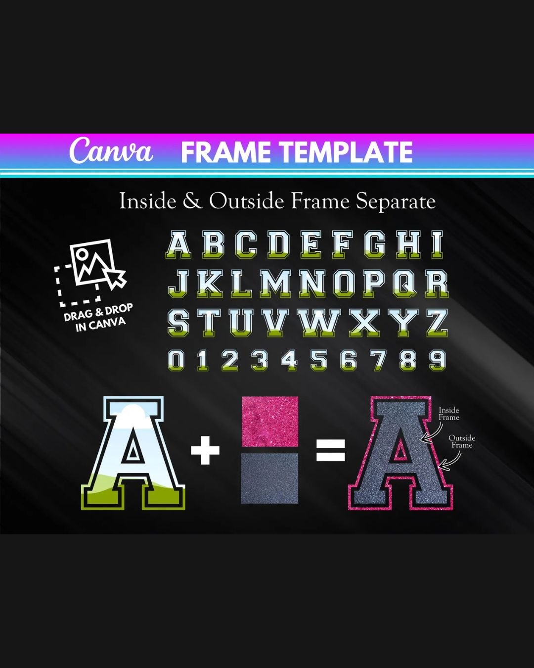 Editable Varsity Letter Canva Frames: Drag & Drop Alphabet (Digital Download)