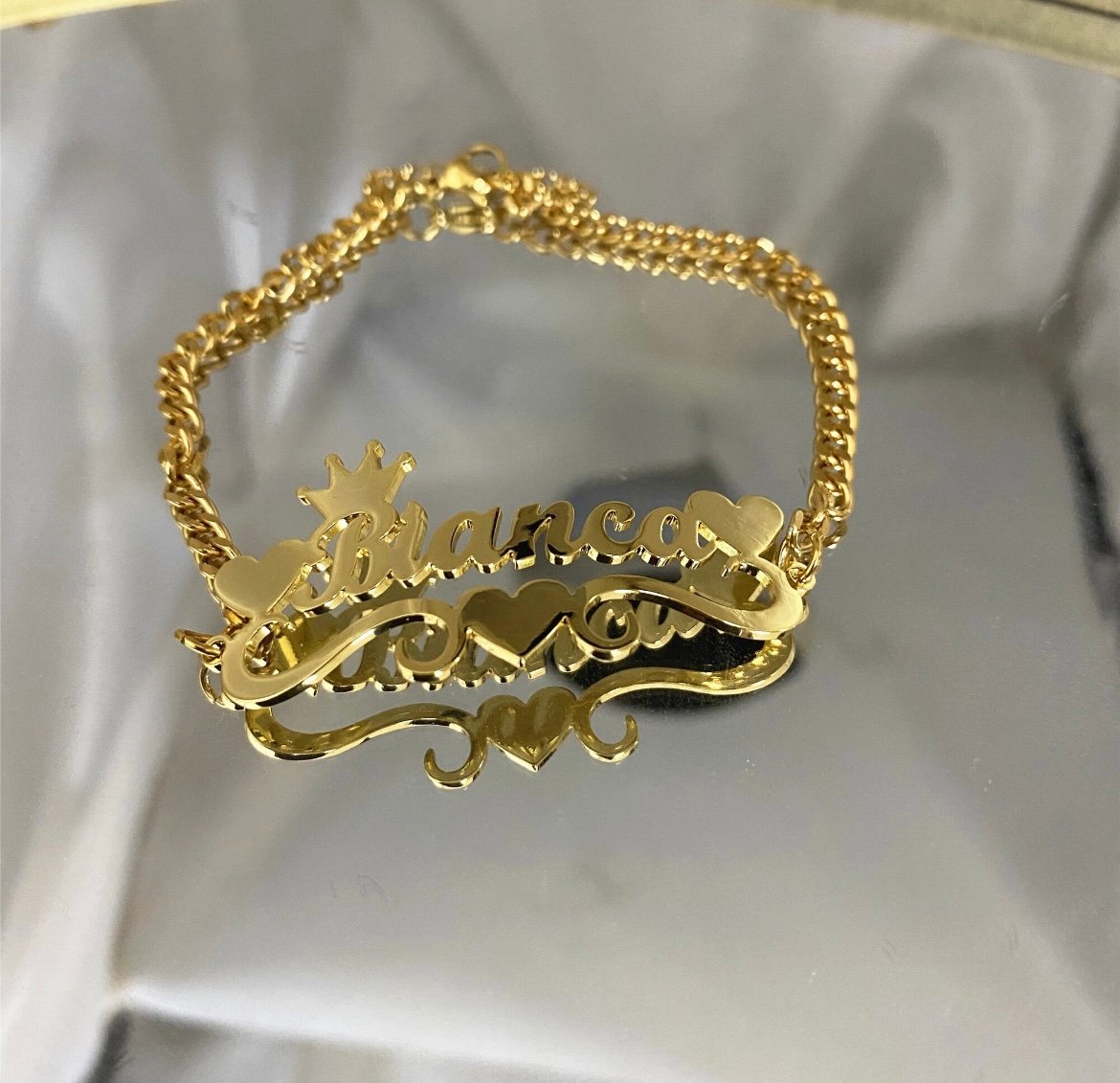 Your name, your vibe. This gold-plated anklet adds crown-worthy shine with a custom name and heart detail. Water + tarnish resistant.