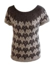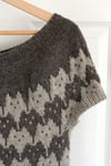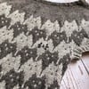 This sweater is knit in the round from the top down. The yoke is worked first, once all of the increases have been made and the first chart has been worked the sleeves are separated and the body can be worked to any length.