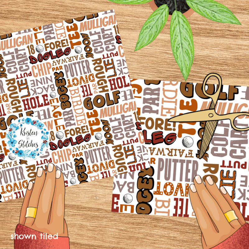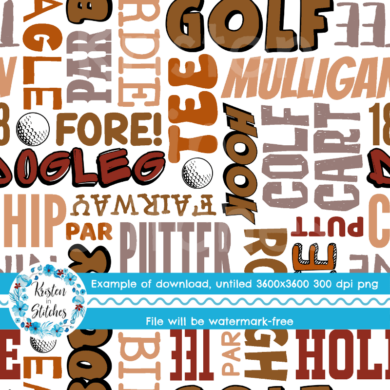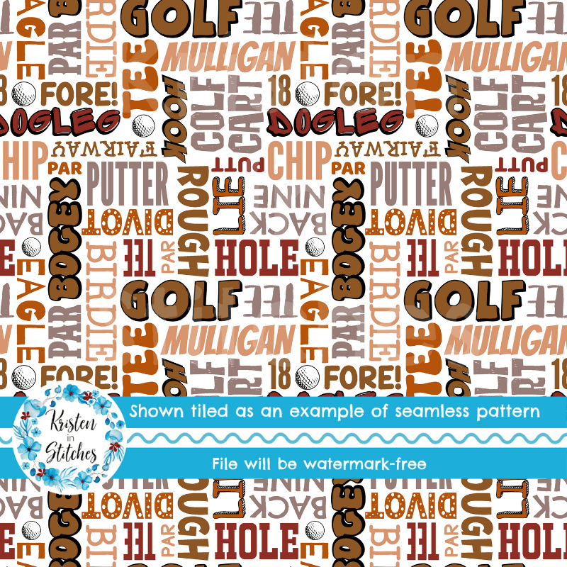 Golf Words Terms Seamless Pattern, Tan and Brown