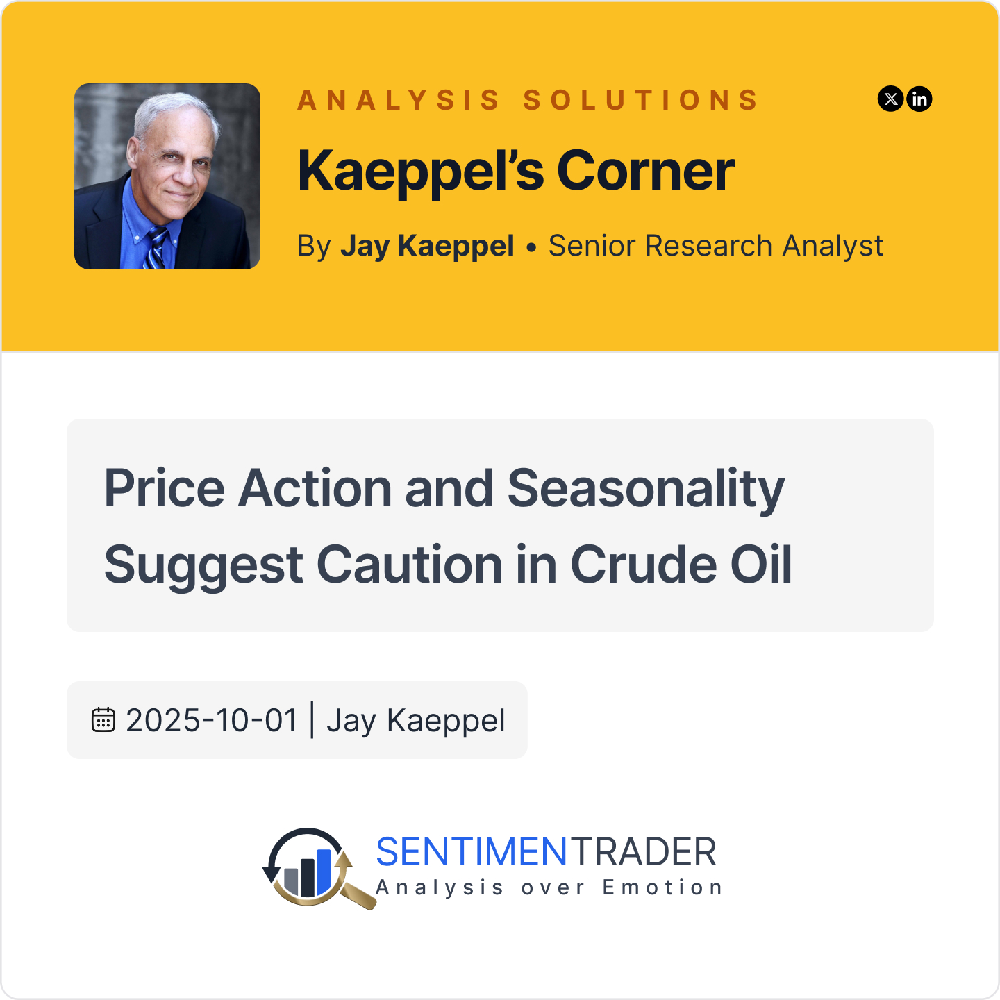 Terms & Conditions: By purchasing this digital report, you acknowledge that all sales are final and non-refundable. The report is for individual use only and may not be shared or redistributed. Access to any linked features or tools referenced within the report (such as proprietary indicators, backtests, or strategies) requires a separate SentimenTrader portal subscription.