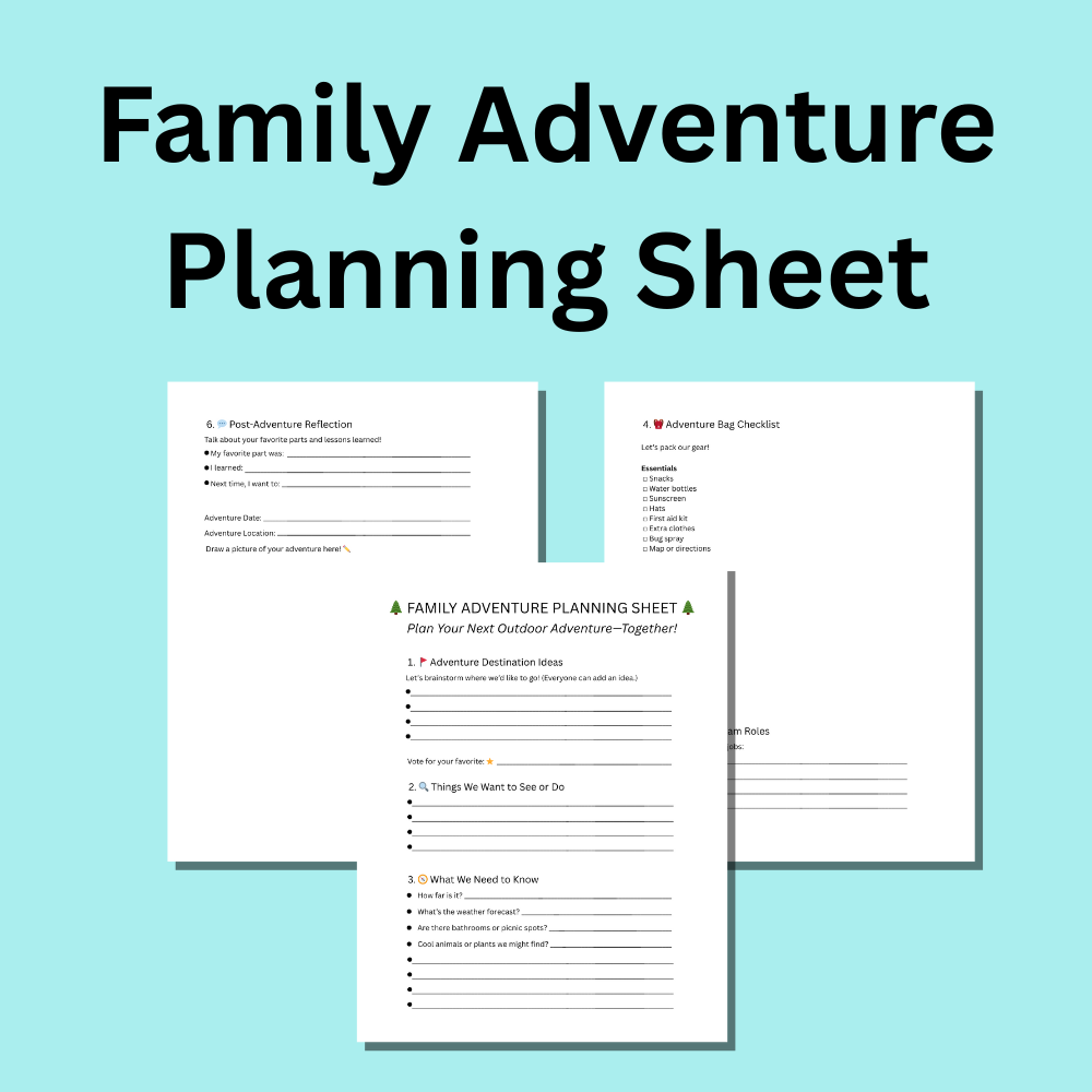 Make family adventure planning a snap with this Family Adventure Planning Sheet. Plan where you'll go, what you want to do, keep track of the info you need, and more. Print again and again, or laminate and use more than once.