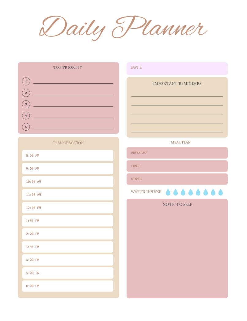 Amazing Daily Planner giving you everything you need from around the clock and personal trackers. Be more organized in your day with our planner.