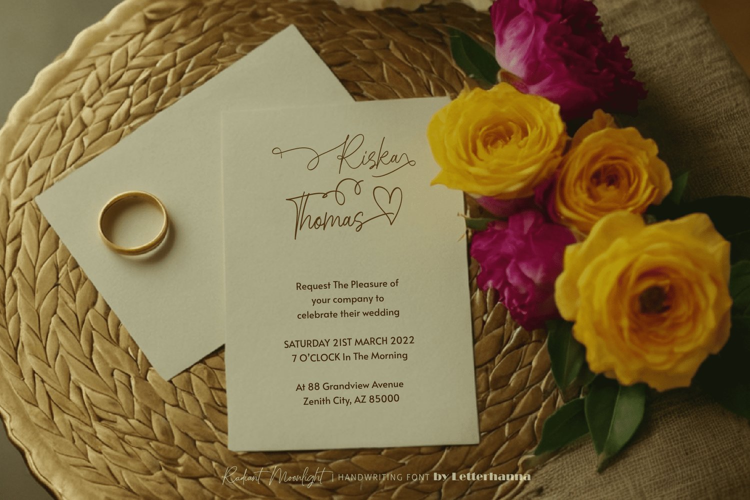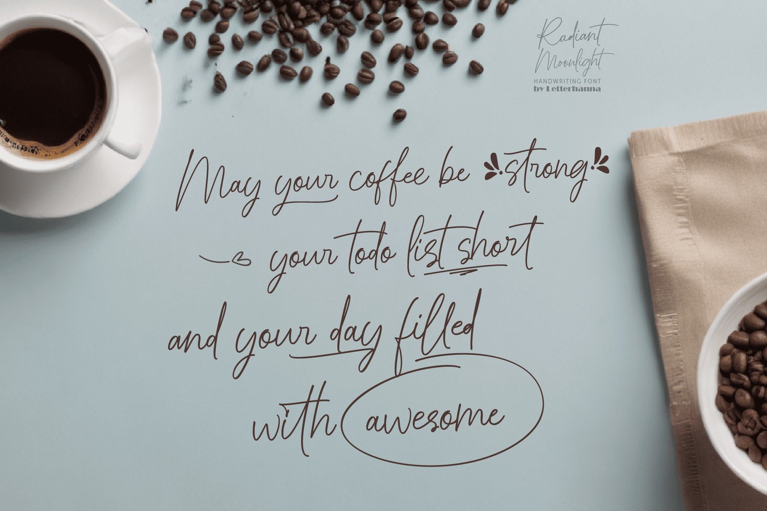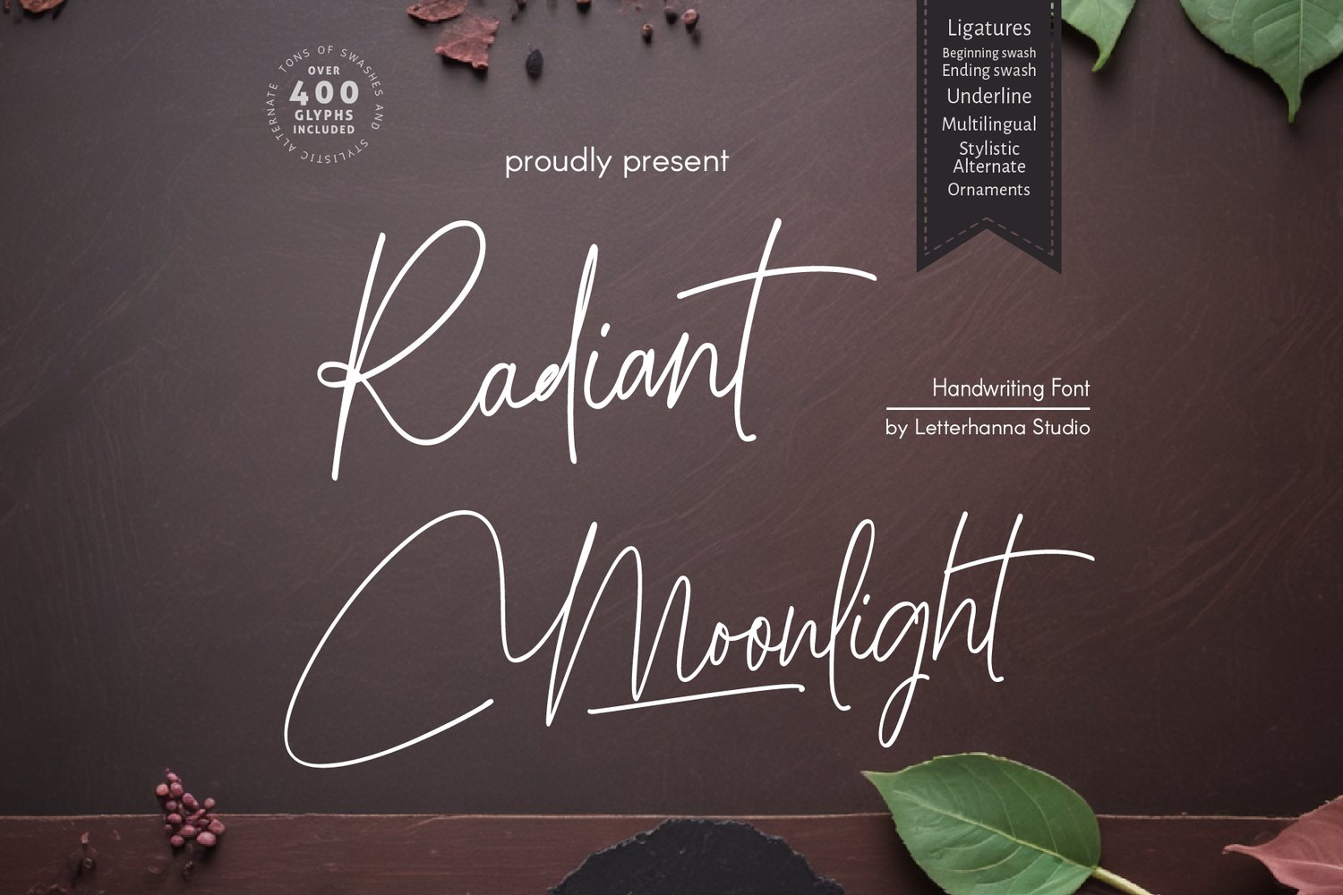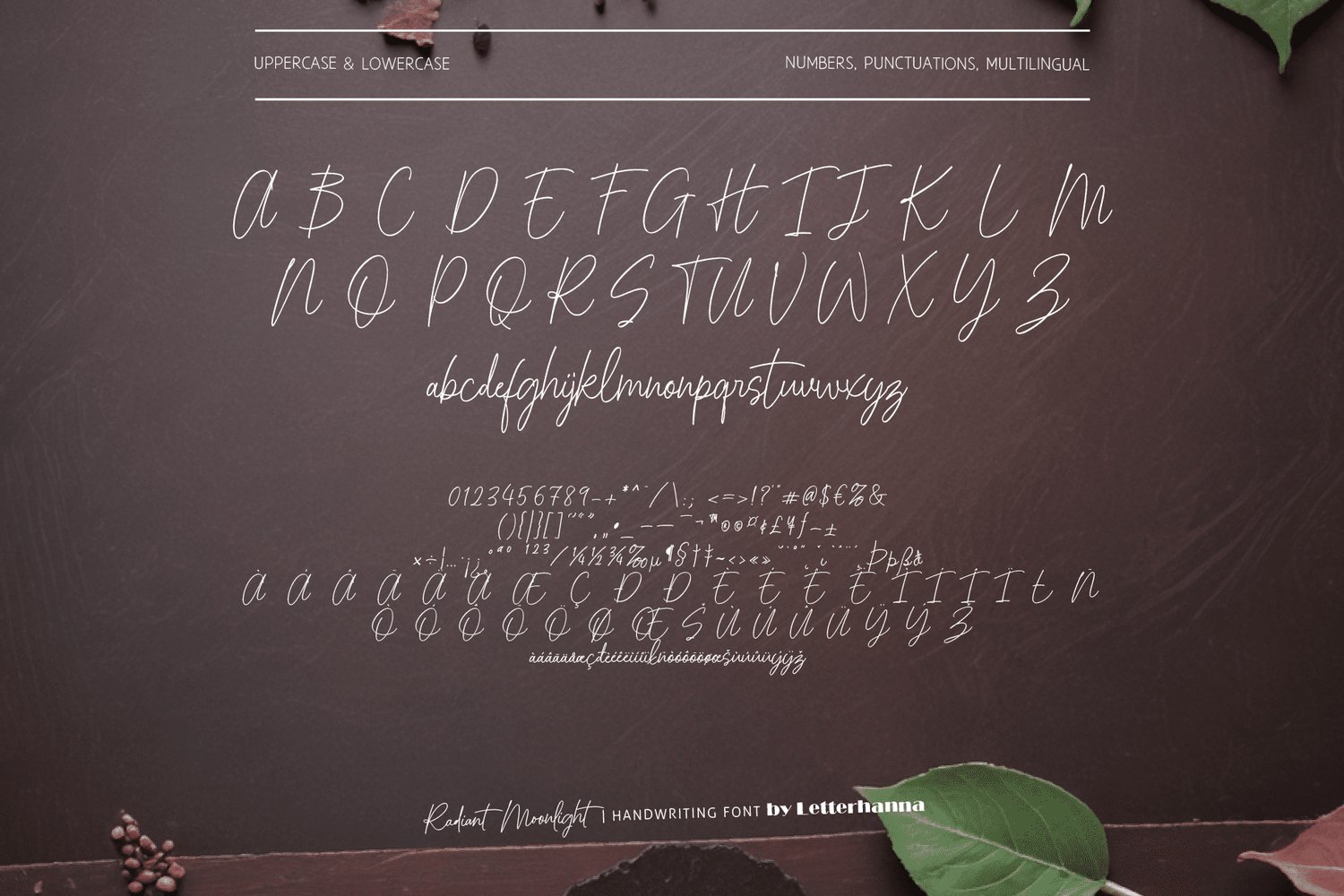 Embrace the magic of moonlit nights with Radiant Moonlight, a captivating new script font designed to weave elegance and wonder into your creative projects. Inspired by the delicate curves of calligraphy and the ethereal glow of moonlight, Radiant Moonlight offers a touch of luxury and sophistication to your words.