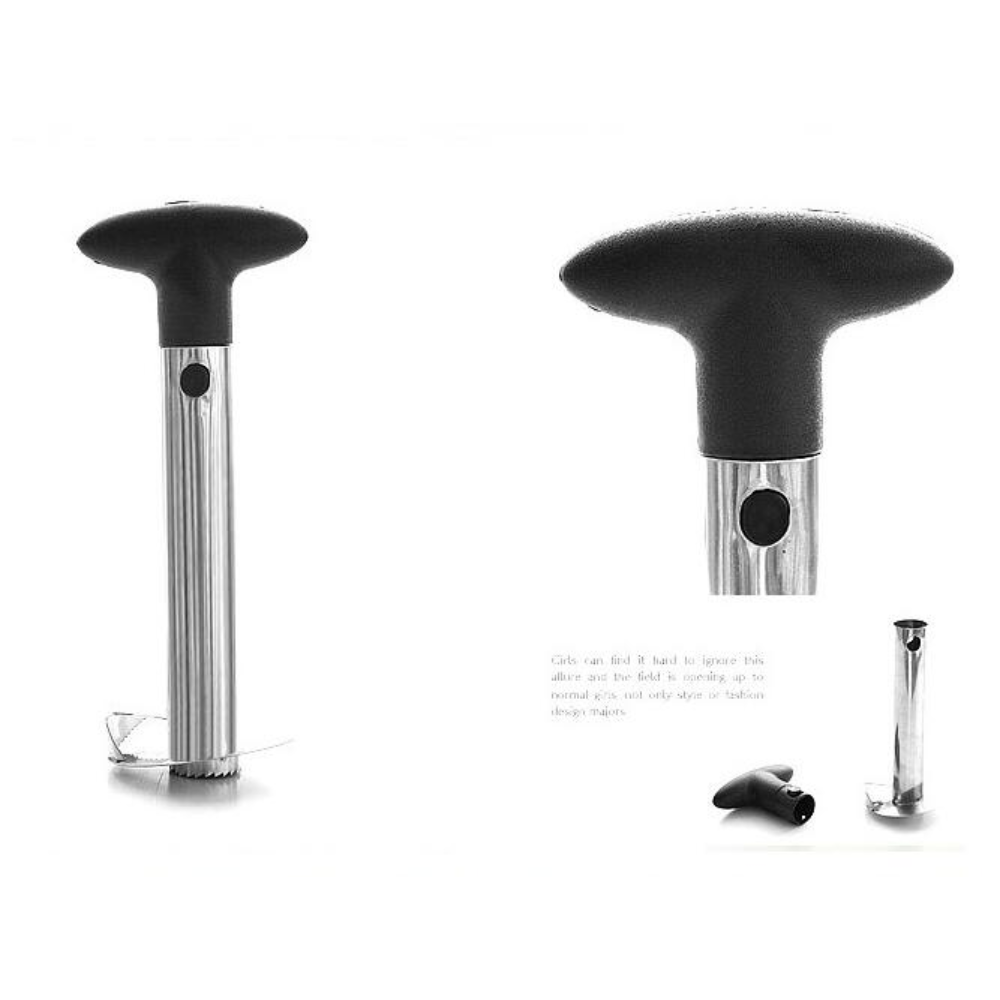 Slicing a pineapple will never be a chore with this pineapple core barrel. It will peel, seed and slice a fresh pineapple in 30 seconds. Removes perfectly formed rings while leaving the core in the shell. Stylish design for anyone grabbing, spinning, and slicing.