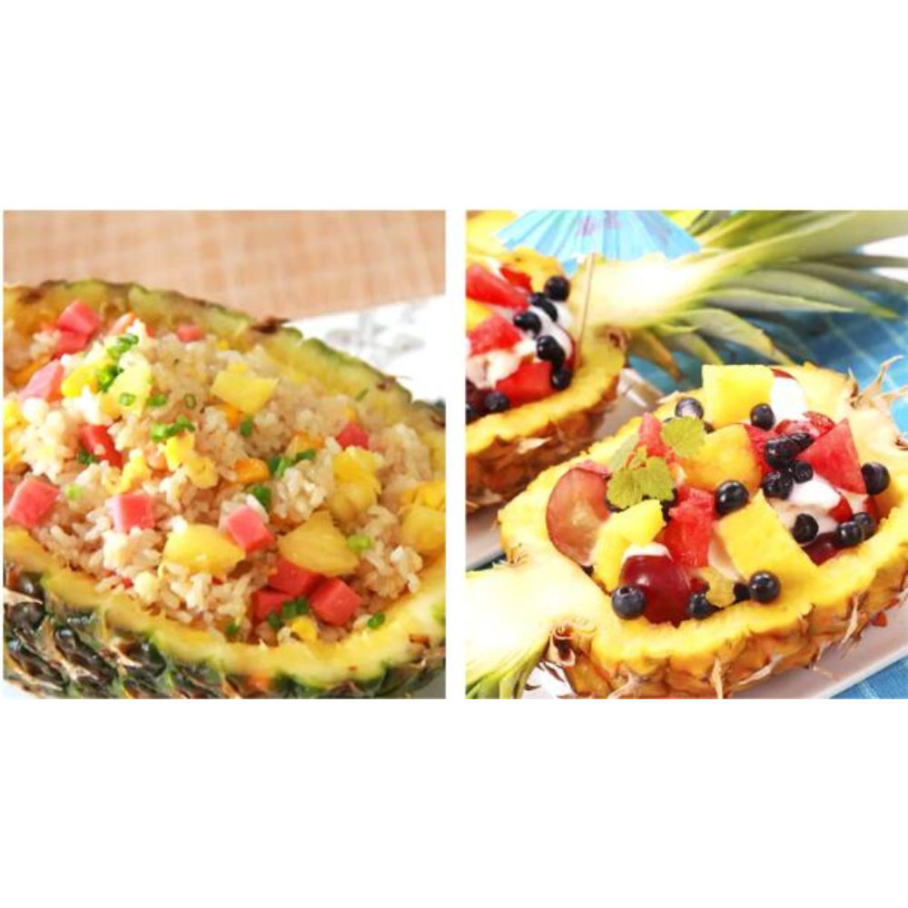 Cut out the core and the shell can be used as a bowl to enhance the pineapple, fruit salad or to contain drinks or desserts. A great centerpiece for your table!