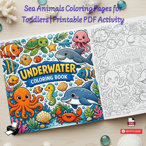 Dive into a magical underwater world with this Underwater Coloring Book for Children, a fun and engaging coloring experience filled with cute sea animals and ocean scenes designed especially for kids.