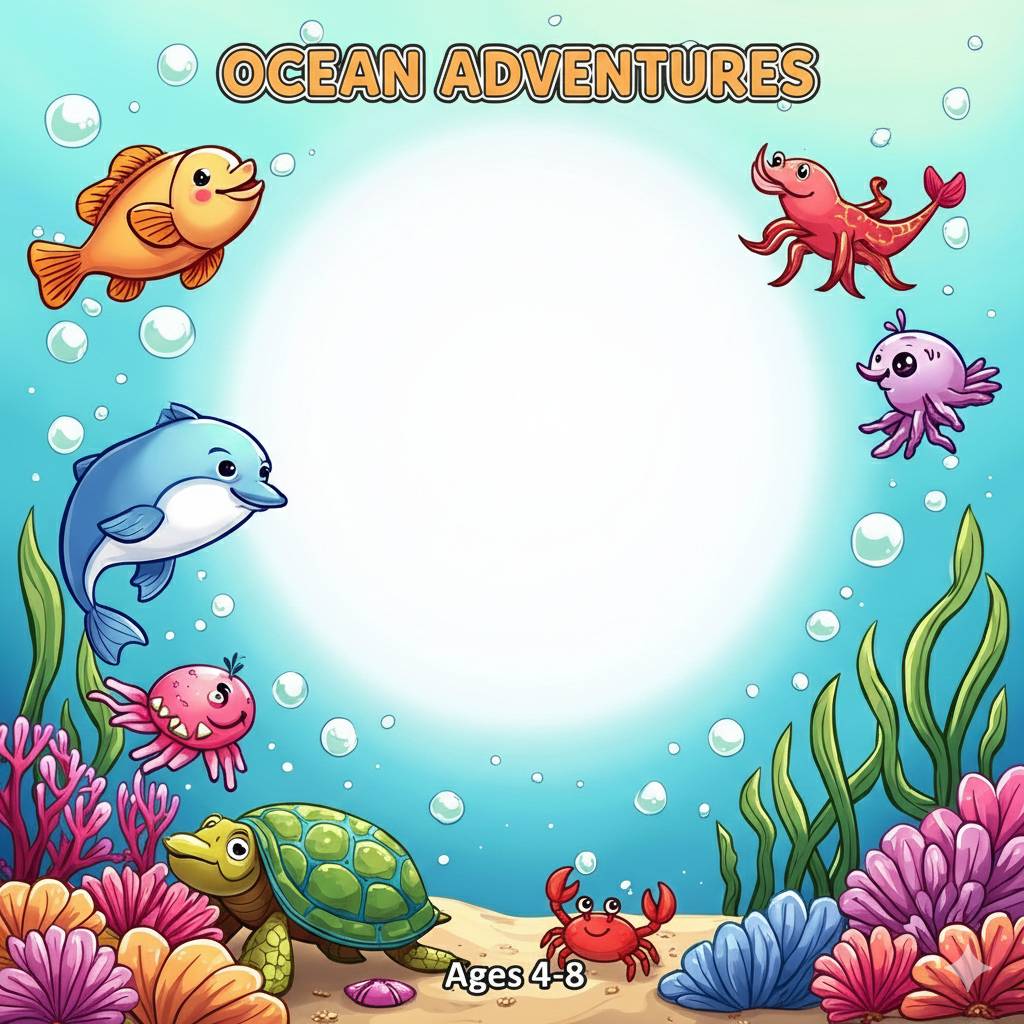 This coloring book invites children to explore the beauty of the ocean while enjoying relaxing and creative coloring time. Inside, kids will meet friendly dolphins, happy fish, playful octopuses, adorable crabs, turtles, seahorses, and many other sea creatures all illustrated in a simple, child-friendly style that’s easy and fun to color.