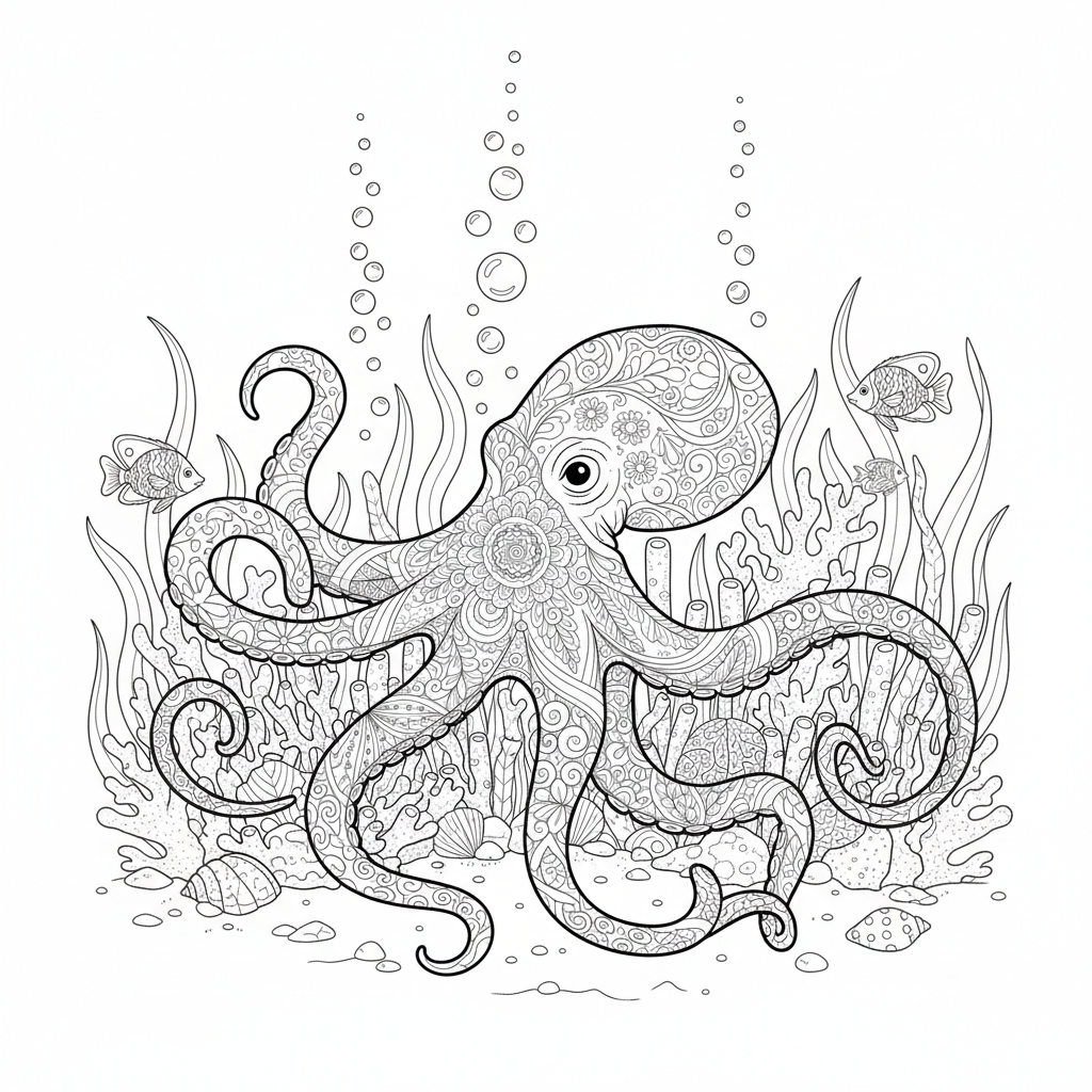 * 30 unique underwater-themed coloring pages