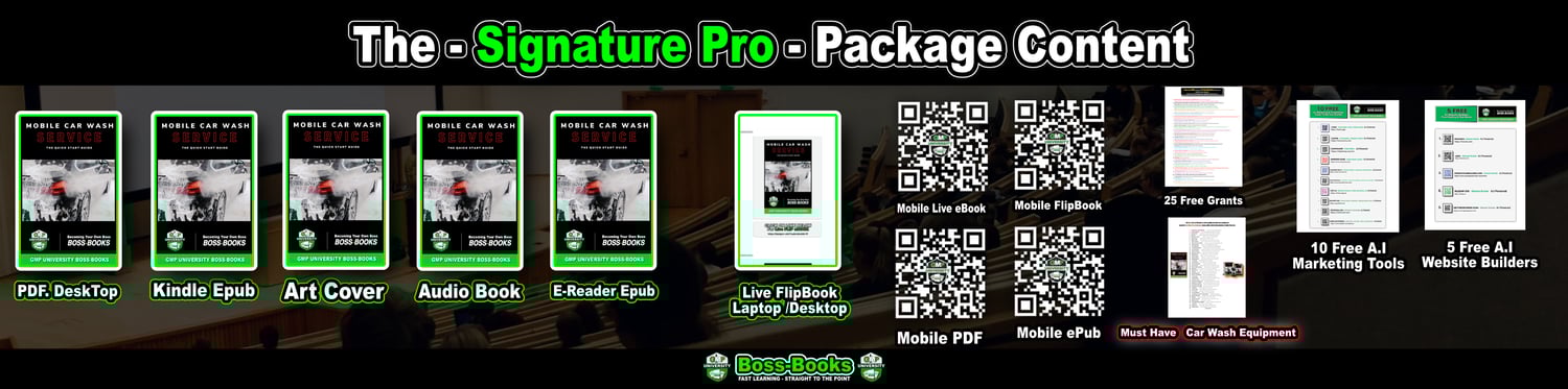 Mobile Car Wash Business - Signature Pro - With Audiobook / Mobile QR Codes / 10 Free A.I Tools / 25 Grant List / 5 Free A.I Website Builders & More