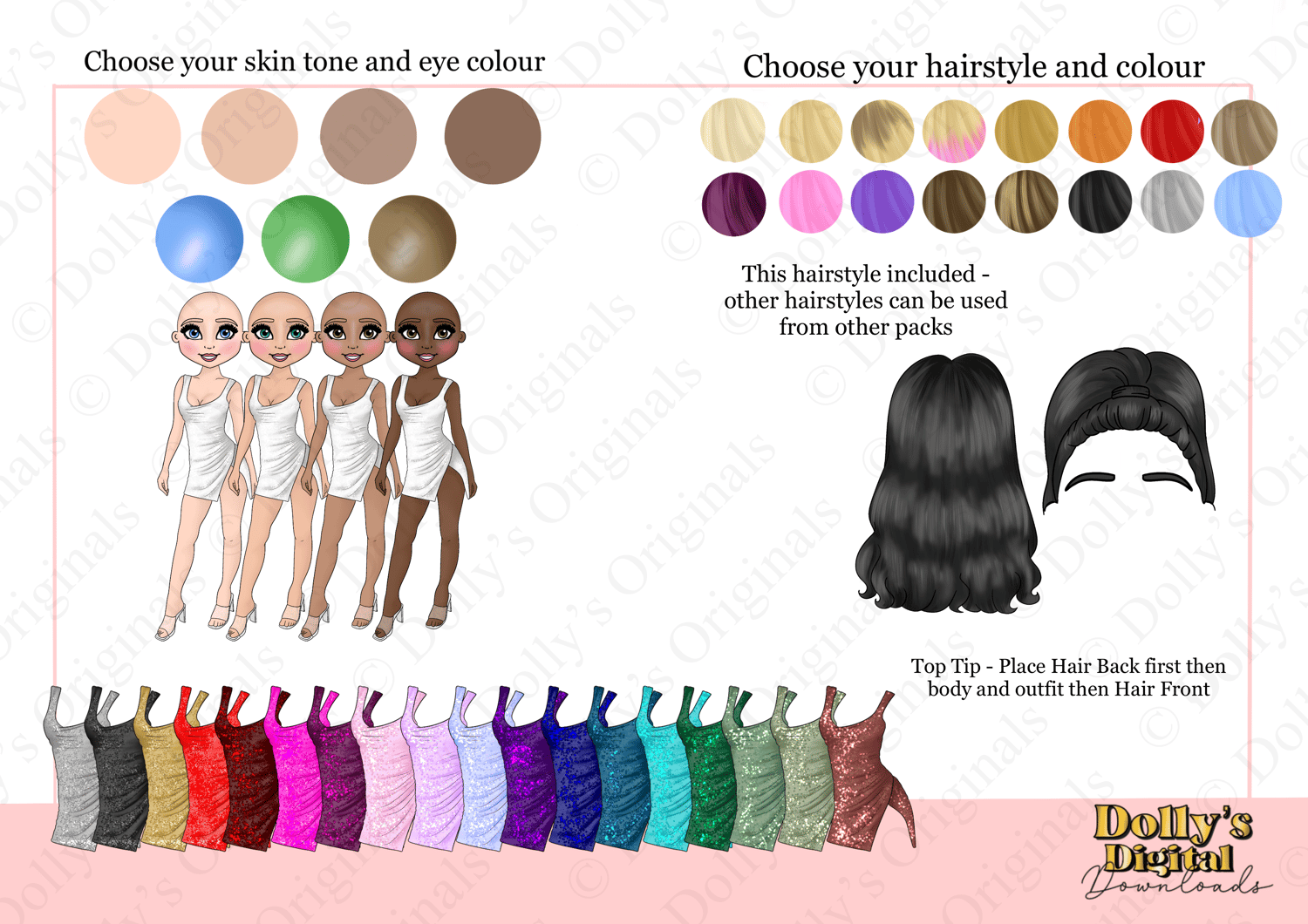 Instant digital download of our Nia’s 19 Dresses Doll Character Bundle PNG (63 PNG’s)
