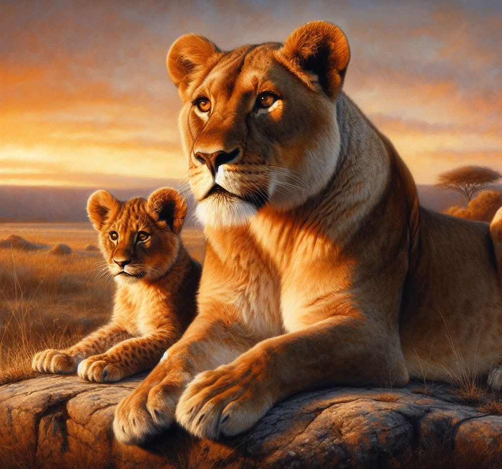Lioness and Cub Cross Stitch Pattern PDF Instant Download