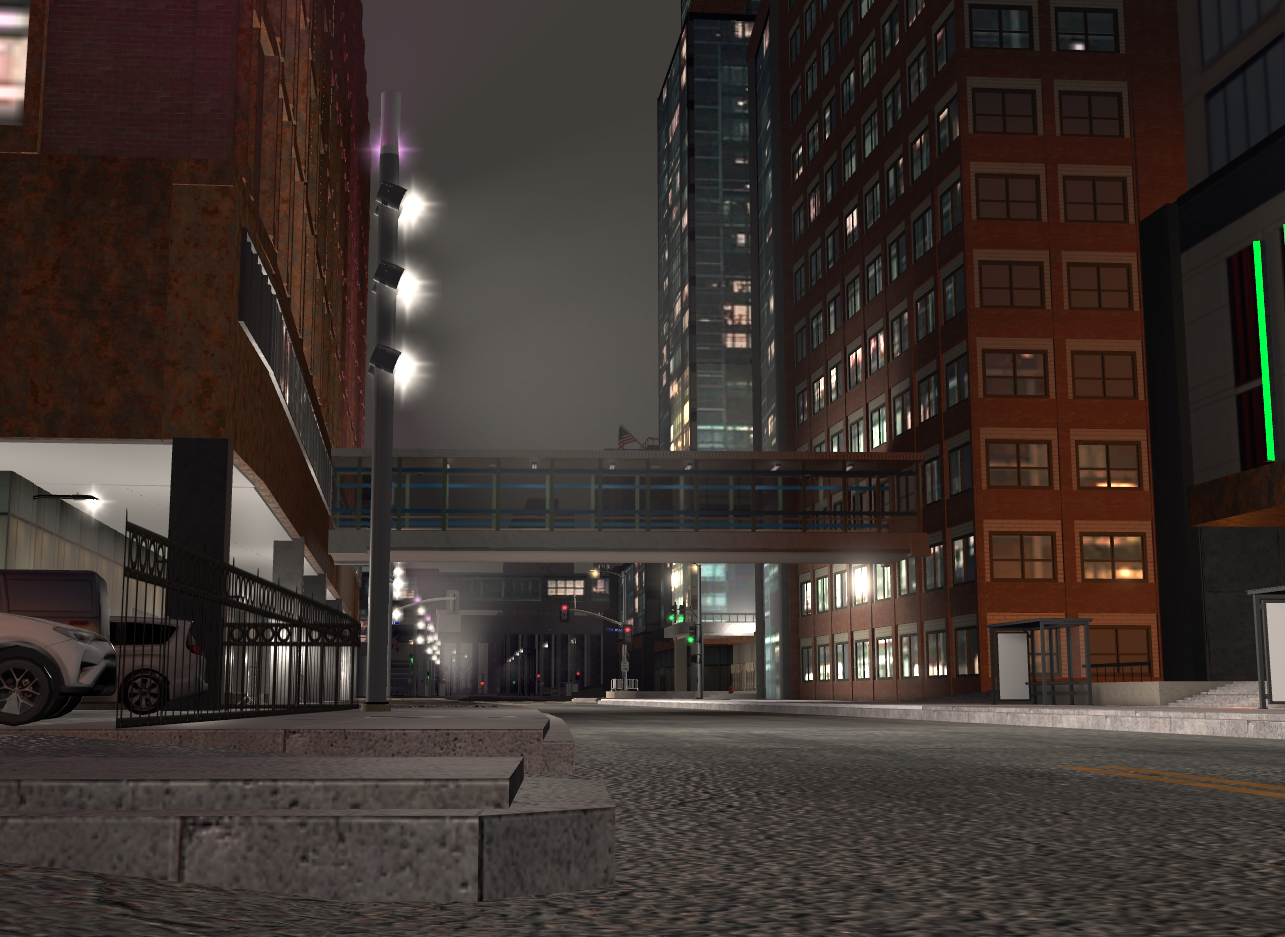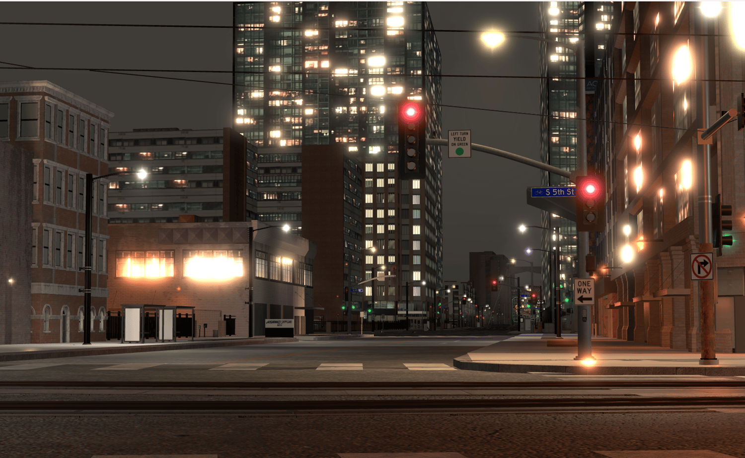 - Moody night lighting with realistic streetlights, traffic signals, and building glow