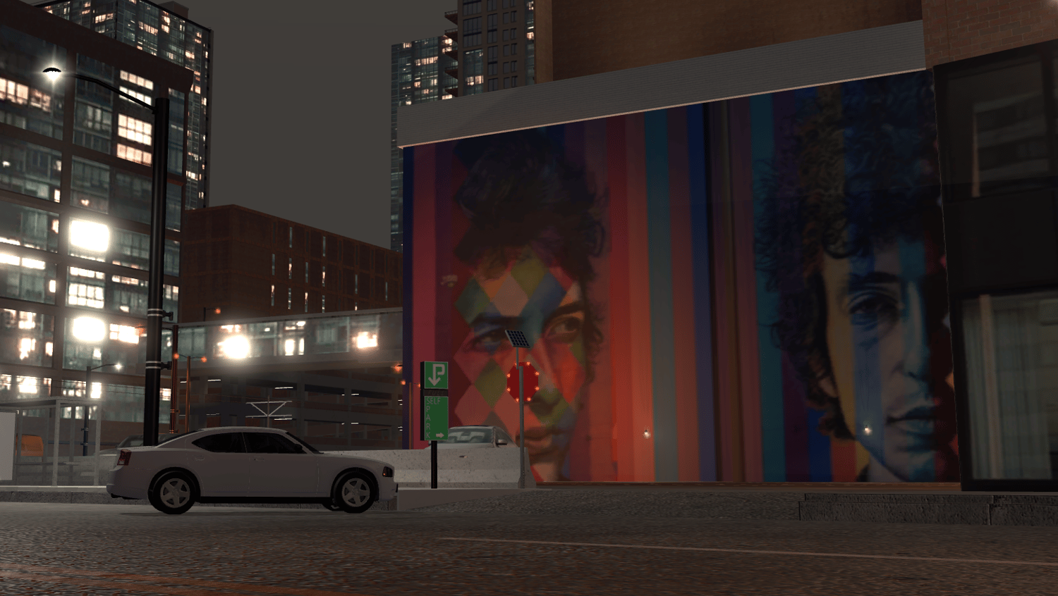 - Realistic street grid with traffic lights, signage, sidewalks, and barriers