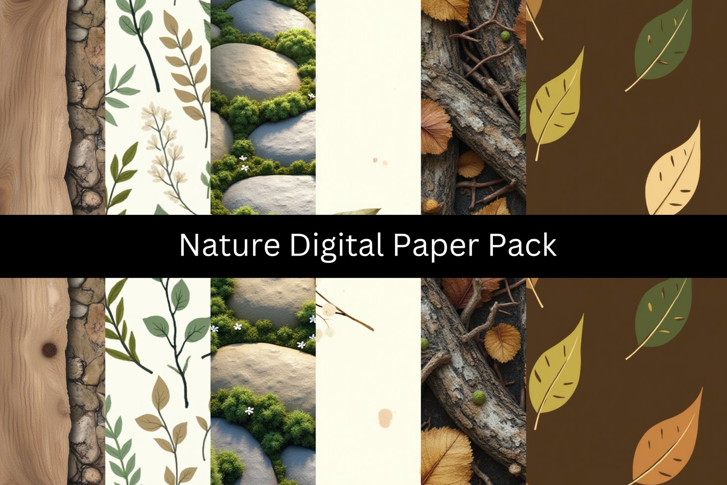 Nature Digital Paper Pack – Floral, Leaves, Earthy Patterns, Seamless Backgrounds, Printable Scrapbook Paper, Instant Download