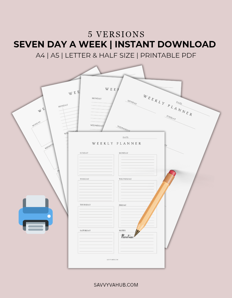Stay organized and focused with this undated weekly planner – designed for simplicity, flexibility, and productivity. This printable and fillable planner includes a clean weekly layout plus a notes section, perfect for tracking appointments, tasks, and goals throughout the week.