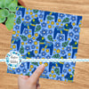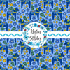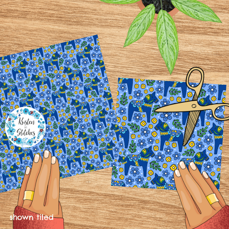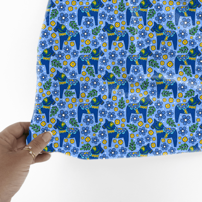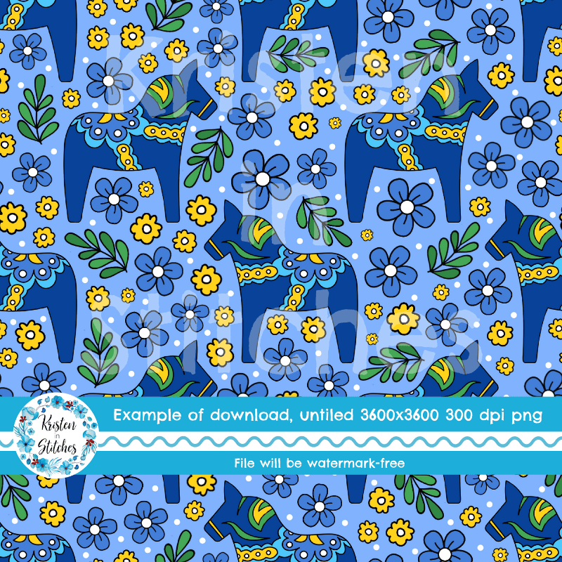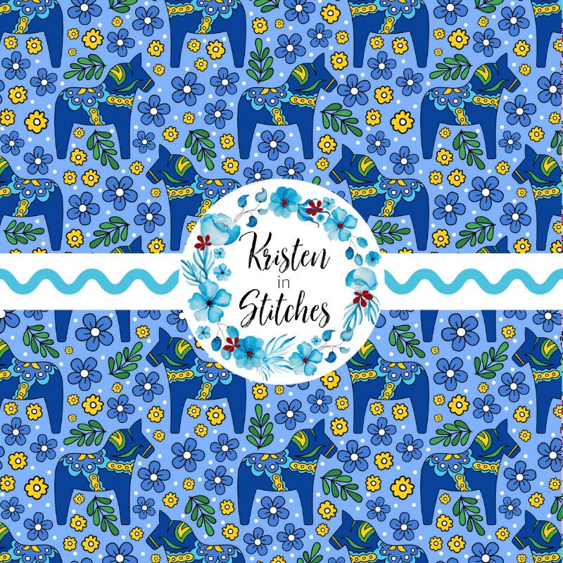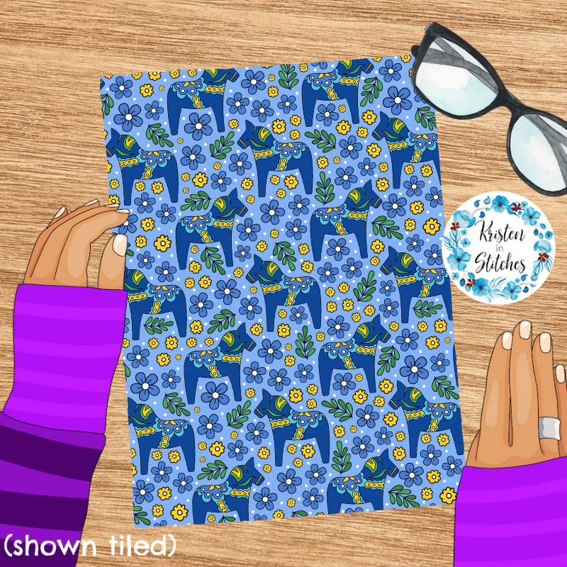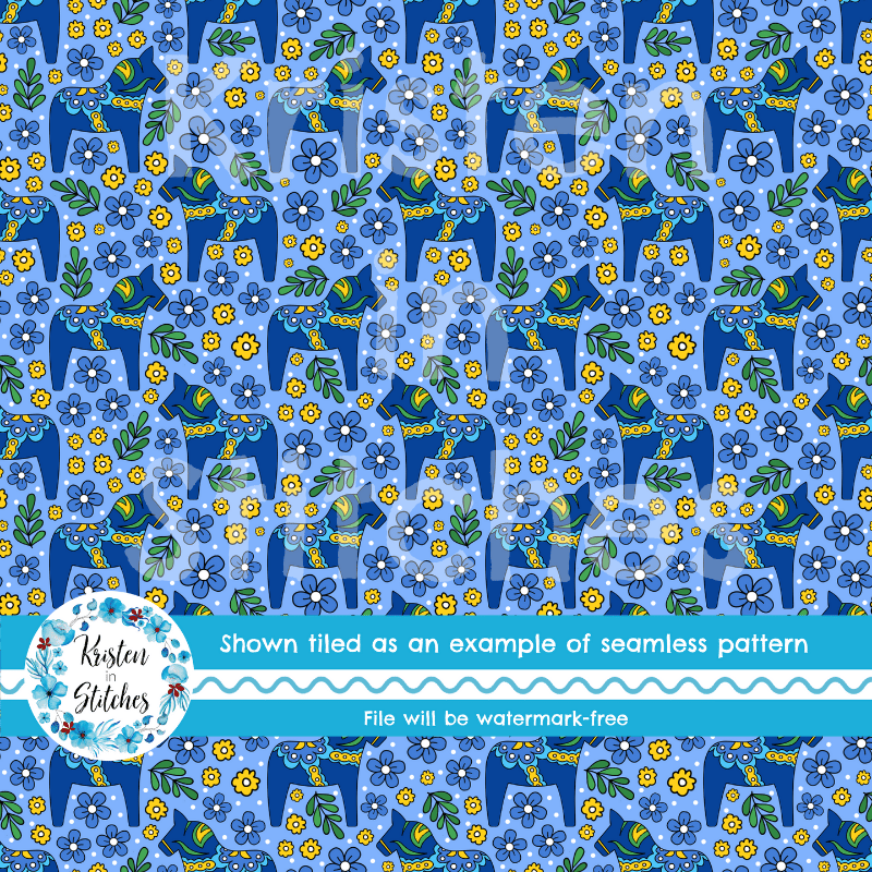 Blue Dala Horse Scandinavian Folk Art Floral Seamless Pattern