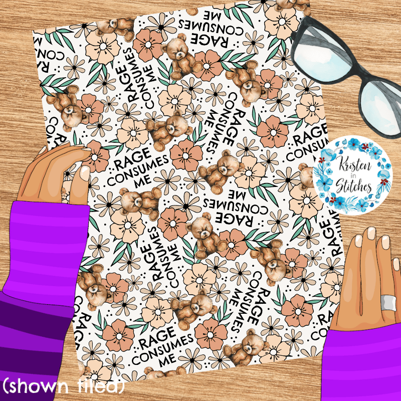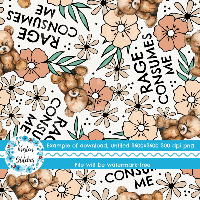 Rage Consumes Me Seamless Pattern, Sarcastic Grouchy Bears