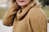 The Honeydew sweater is worked seamlessly from the bottom up. The entire body is worked in the textured pattern based on simple twists. Front and back are divided at armholes, shaped separately and then joined at the shoulders using a centered double decrease. Stitches are picked up around the neck which is then finished with a ribbed cowl neck using increasingly larger needles. Finally, the stockinette sleeves with ribbed cuffs are worked in the round.