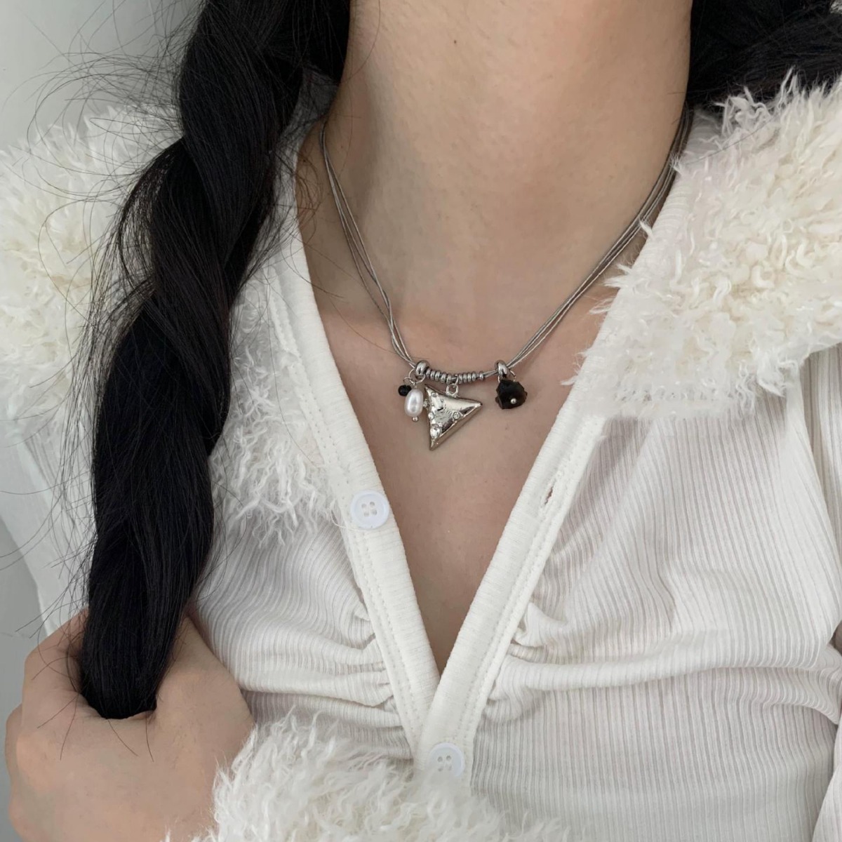 This necklaces that seem simple but are not boring! Elements of different shapes and materials are mixed and matched, which is both exquisite and not overwhelming! Especially the chain of the necklace fits perfectly with the pendants!