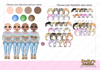 three different skin tones, three eye colours and 15 hair colours