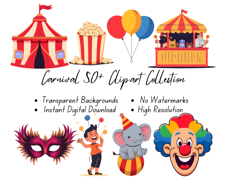 Carnival 50+ Clipart Collection | High-Resolution Digital Printables | Instant Download | No Watermark