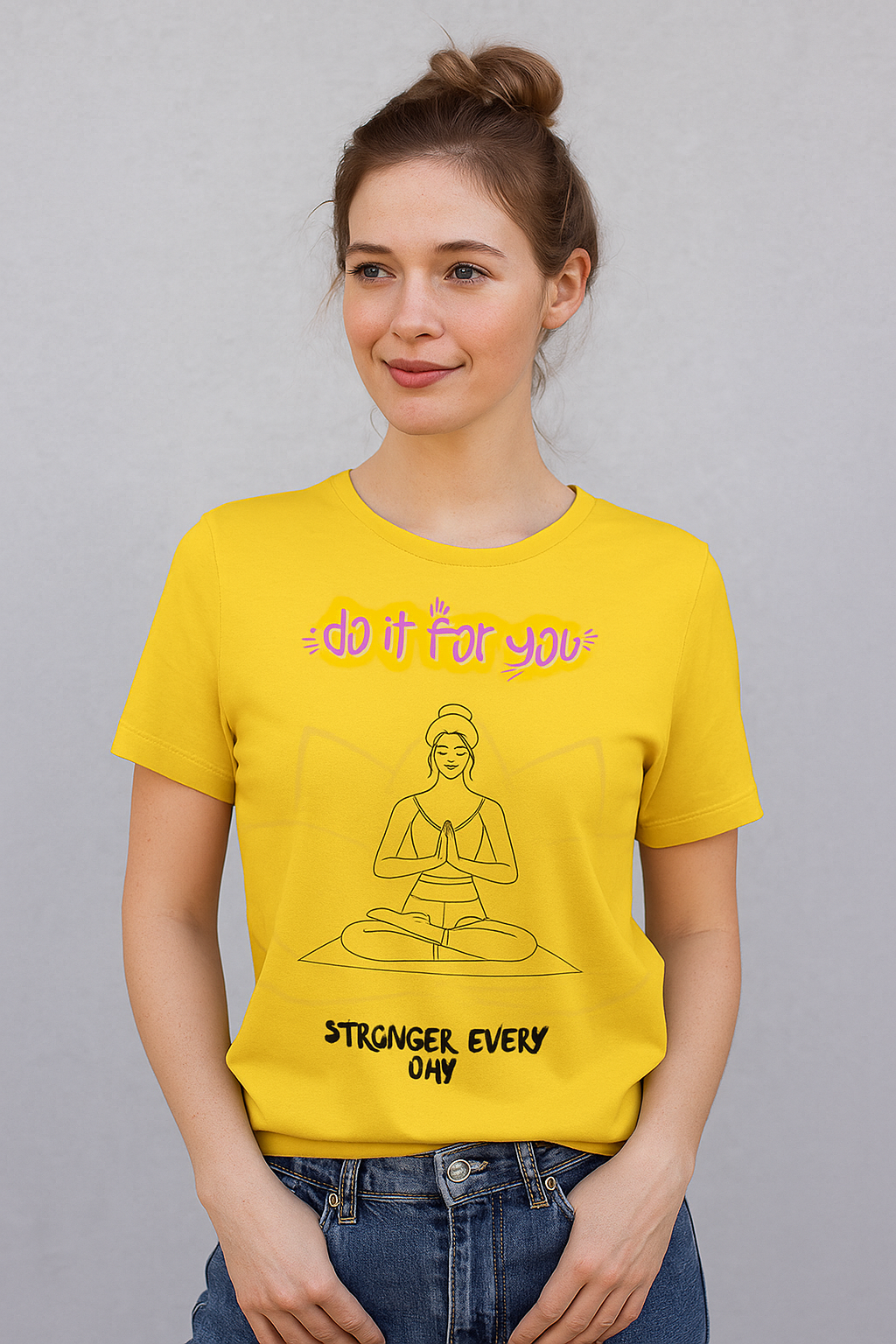 ✨ Featuring the inspiring quote “Do it for You” and “Stronger Every Day” along with a calming yoga illustration, this tee is perfect for yoga lovers, fitness enthusiasts, and anyone on their self-growth journey.