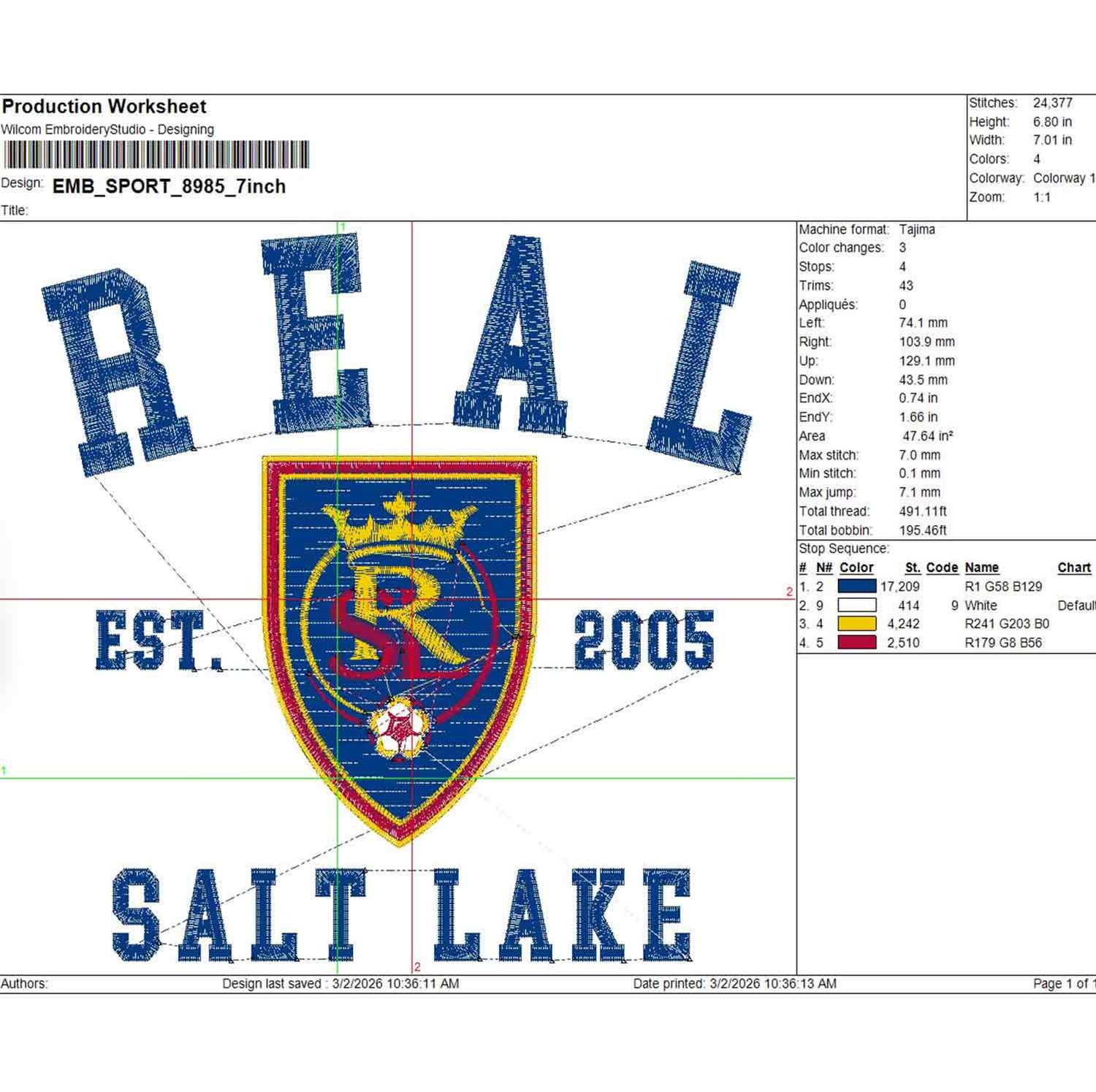 MLS Real Salt Lake Est 2005 Logo Embroidery Designs, Real Salt Lake Embroidery Files, MLS Real Salt Lake Logo Embroidery, Major League Soccer Machine Embroidery Design, Digital Download