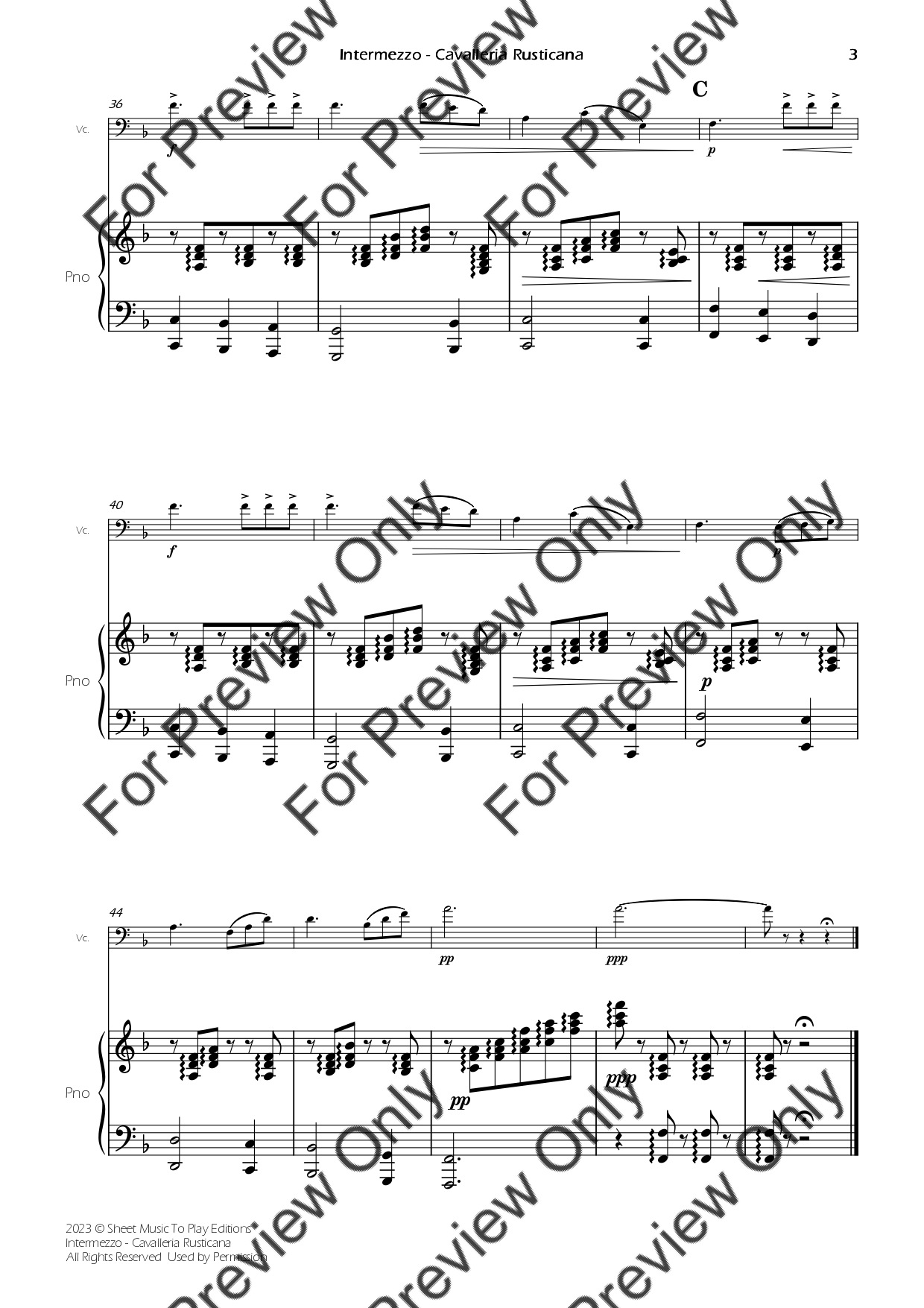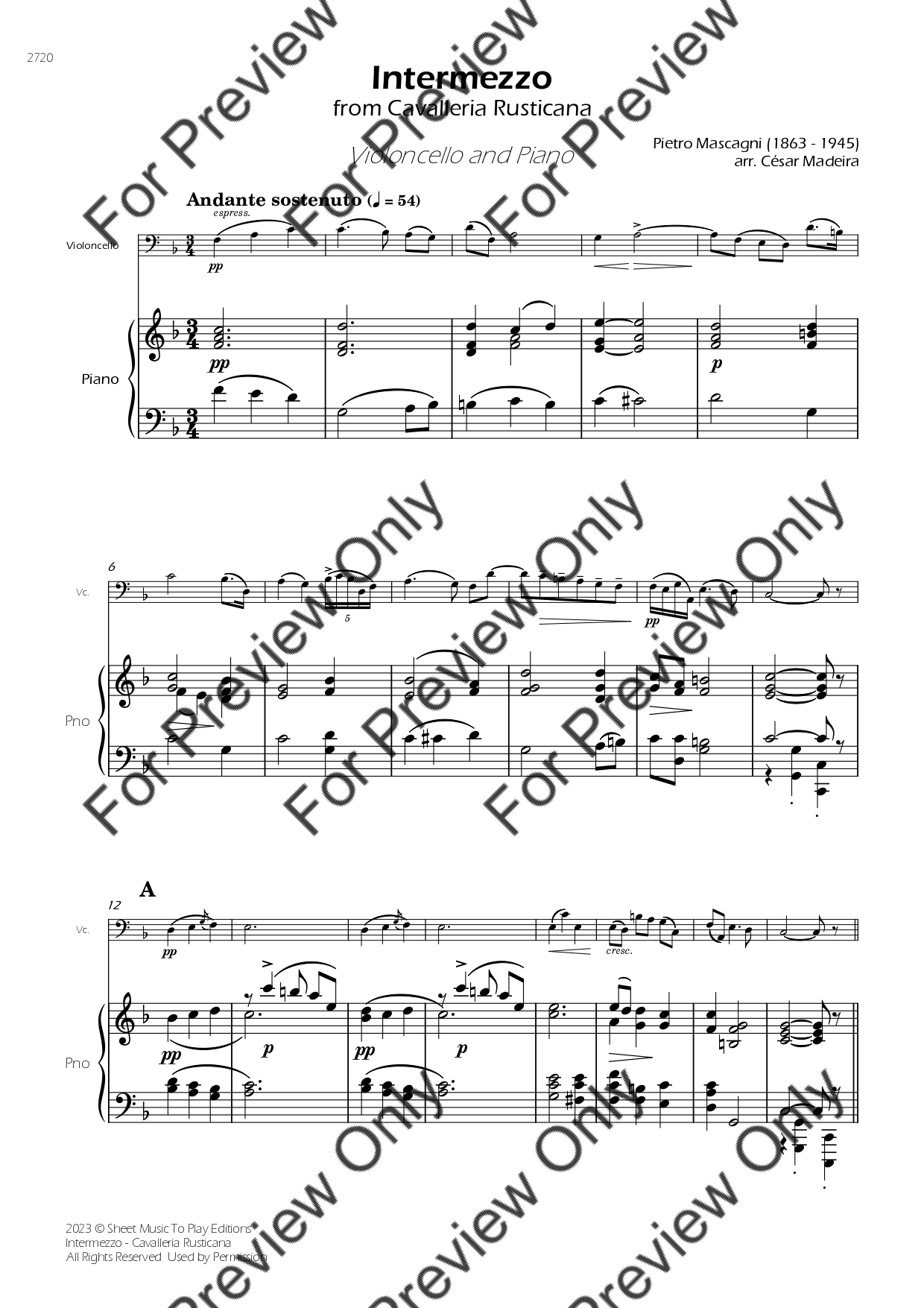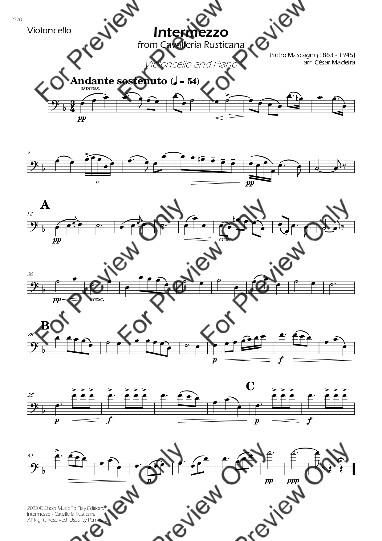 Intermezzo from Cavalleria Rusticana by Pietro Mascagni. Arrangement for Violoncello and Piano. With Full Score and Individual Parts. Have fun!