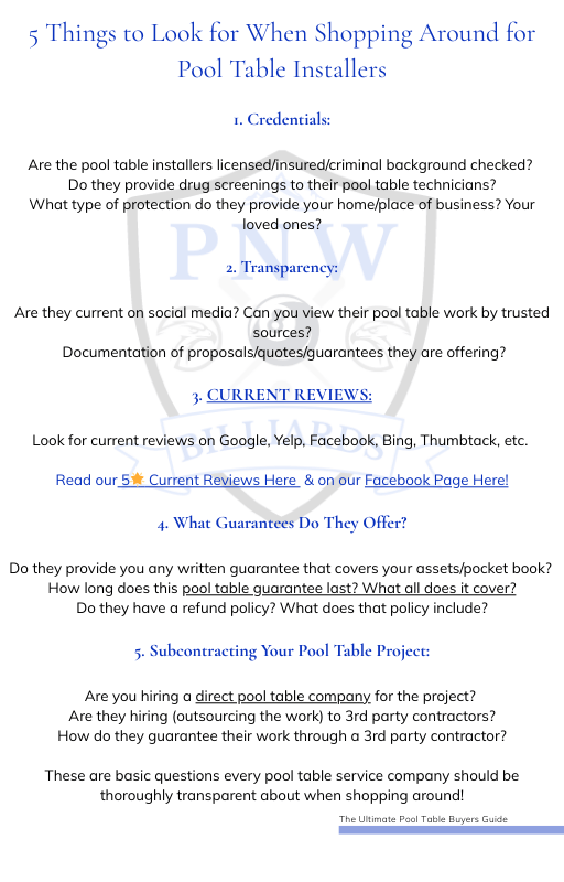 ✔ Bonus: Direct link to contact PNW Billiards for personalized support