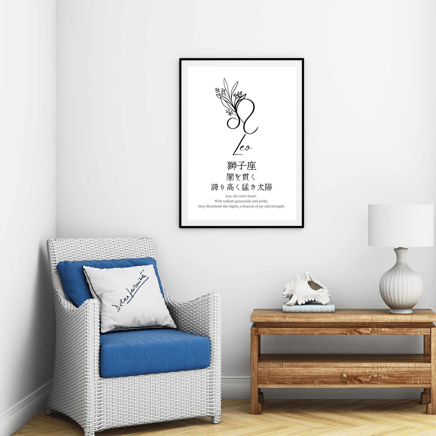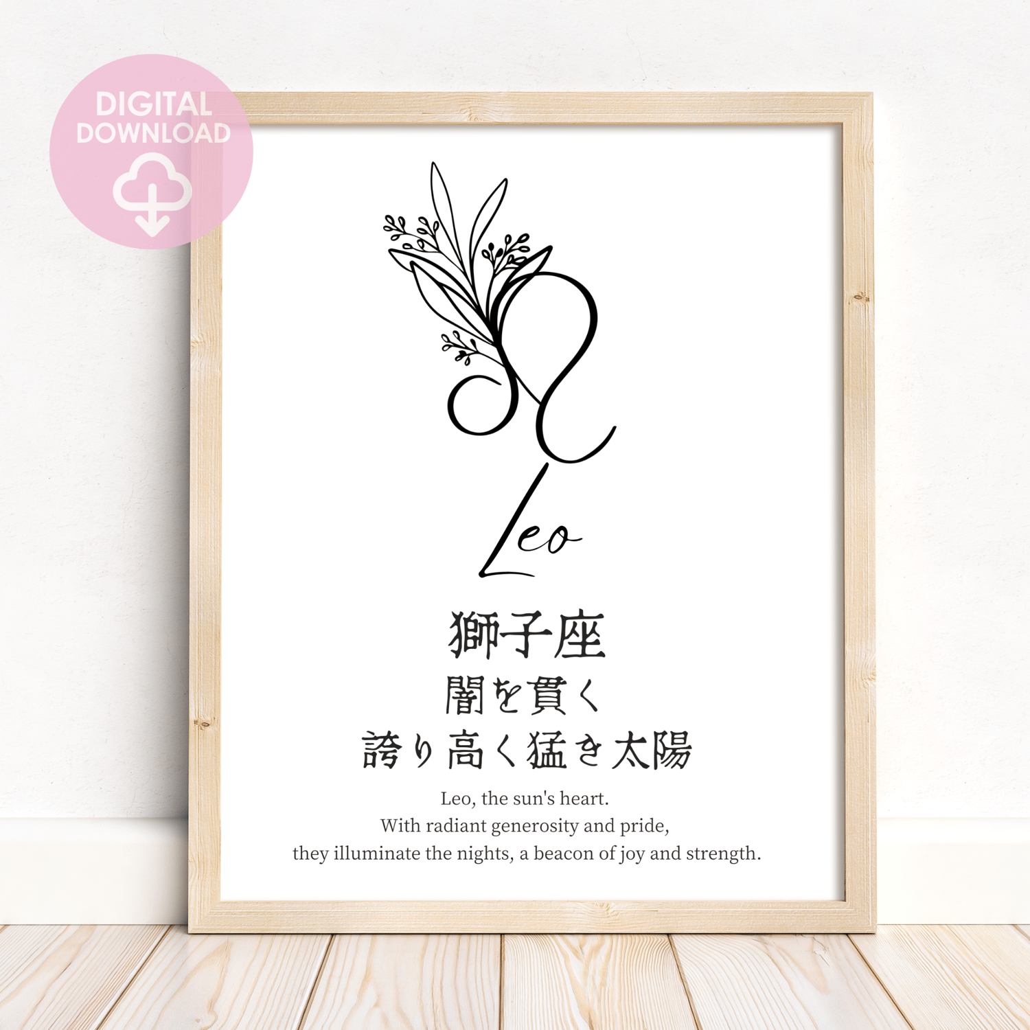 Step into the world of astrology with my Leo wall art, featuring a simple yet striking black and white design. This piece combines the Leo symbol with inspiring quotes in both Japanese and English, reflecting Leo’s courageous spirit.