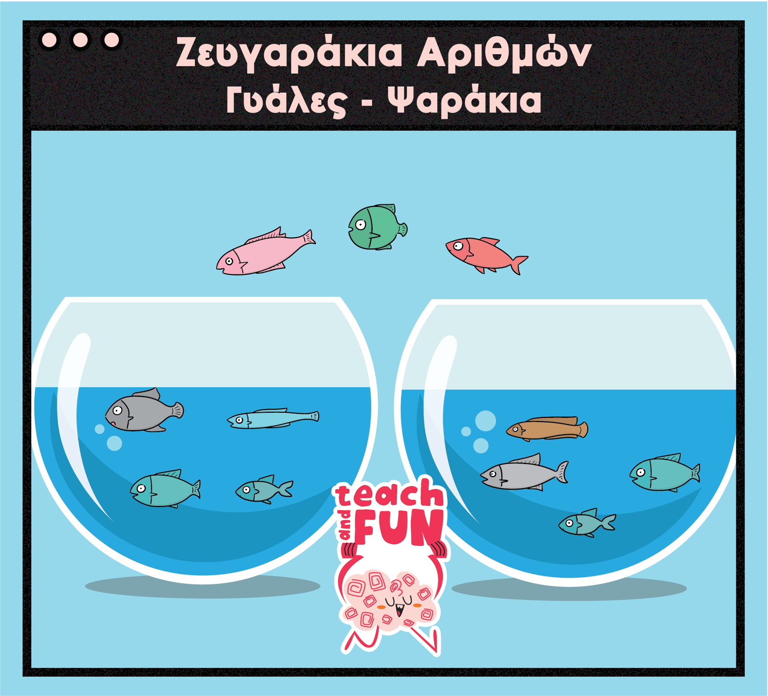 Εποπτικό υλικό με γυάλες και ψαράκια για να κατανοήσουν και να μάθουν τα παιδιά τα ζευγαράκια των αριθμών. Το αρχείο περιέχει 2 διαφορετικά σετ για να τυπώσετε και να χρησιμοποιήσετε αυτό που σας αρέσει περισσότερο!