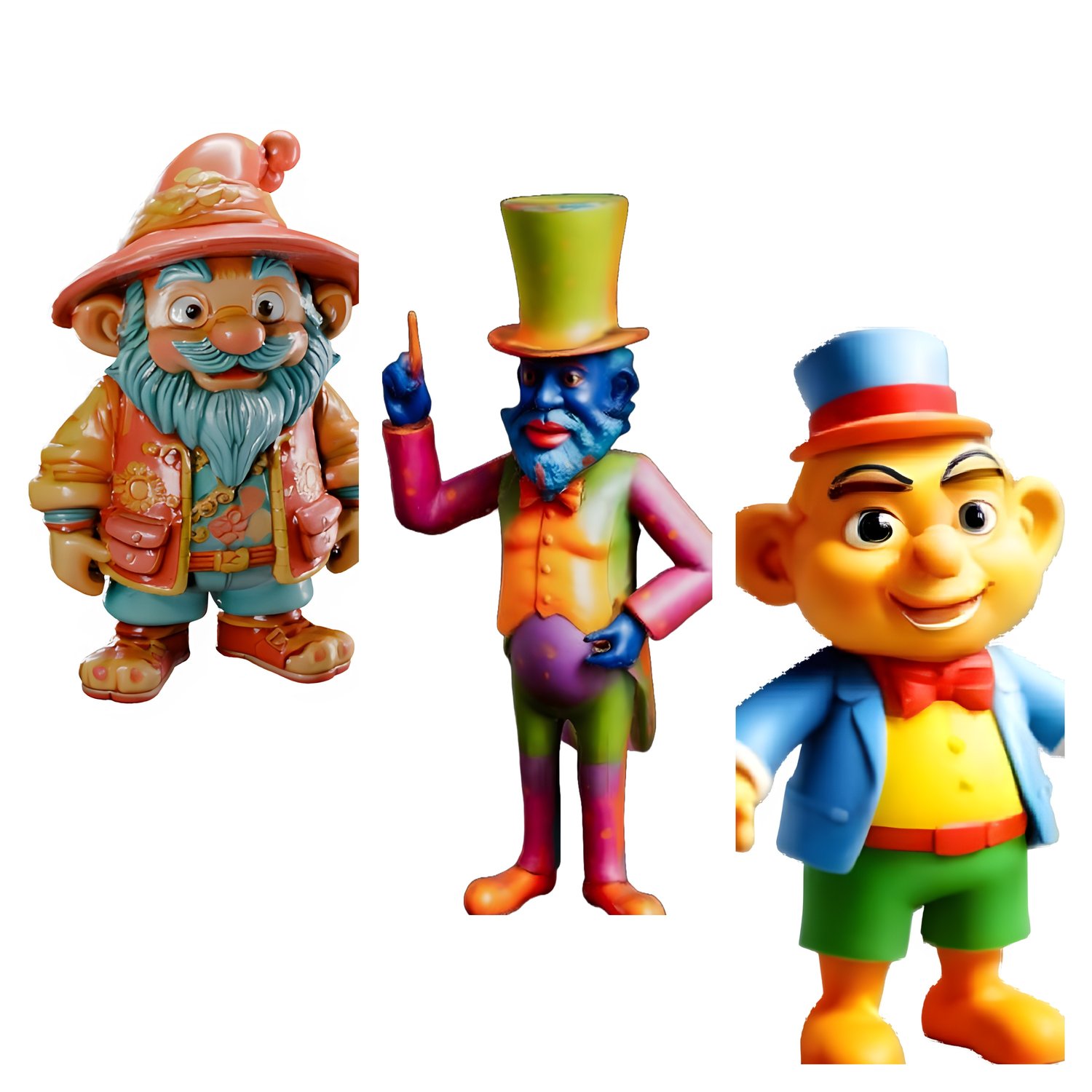 Step into a world of whimsy and charm with this delightful collection of 3D-printed figurines! This set features three unique characters, each bursting with personality and vibrant colors.