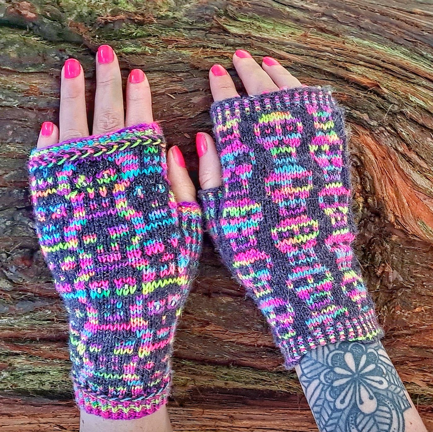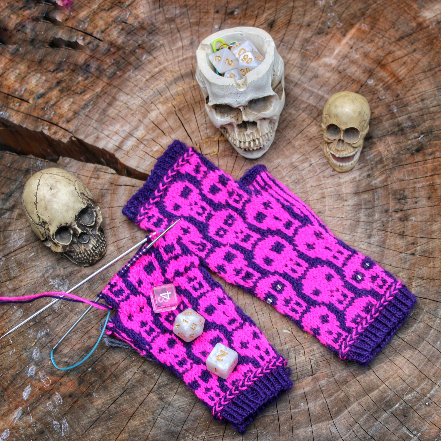 Roll for Skull Gloves are part of the Adventure Series: Featuring fun dice games to randomise your knitting and create unique gothic knitwear.