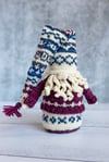 Gnemo loves ice-skating on outdoor rinks, hot chocolate with a little rum in it afterwards, and the fact that early twilight means he gets to light candles at supper. He features colourwork, a curly beard, and a cuddly sweater!
