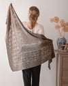 Krisanteema is a symmetrical triangular shawl knit top down with a Garter Tab Cast-On and increases along the edges and its central spine to obtain its final shape. In the scalloped petal sections the alternating colours are carried along the right edge of RS rows and the shawl is finished with the Stretchy Ribbing Bind-Off to ensure a clean and controlled stretch of the ribbing.