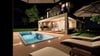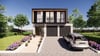 This modern house plan is an architectural masterpiece designed using three 40-foot shipping containers. The containers are elevated off the ground atop a concrete garage to create a modern container floor plan with 3 bedrooms, 2.5 bathrooms, and an open-plan living. The elevated containers house a large outdoor living space underneath, with alfresco dining overlooking the terraced gardens. Additionally, the house boasts a swimming pool on the rear, surrounded by a spacious pool deck area and outdoor living space perfect for entertaining.