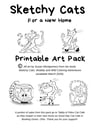 This printable art pack features five sketchy cat illustrations from my book, Sketchy Cats: Wobbly and Wild Coloring Adventures (available March 2026). Each cat has its own playful personality. 8.5x11 printables are perfect for framing, gifting, coloring, or adding a little cat joy to your space.