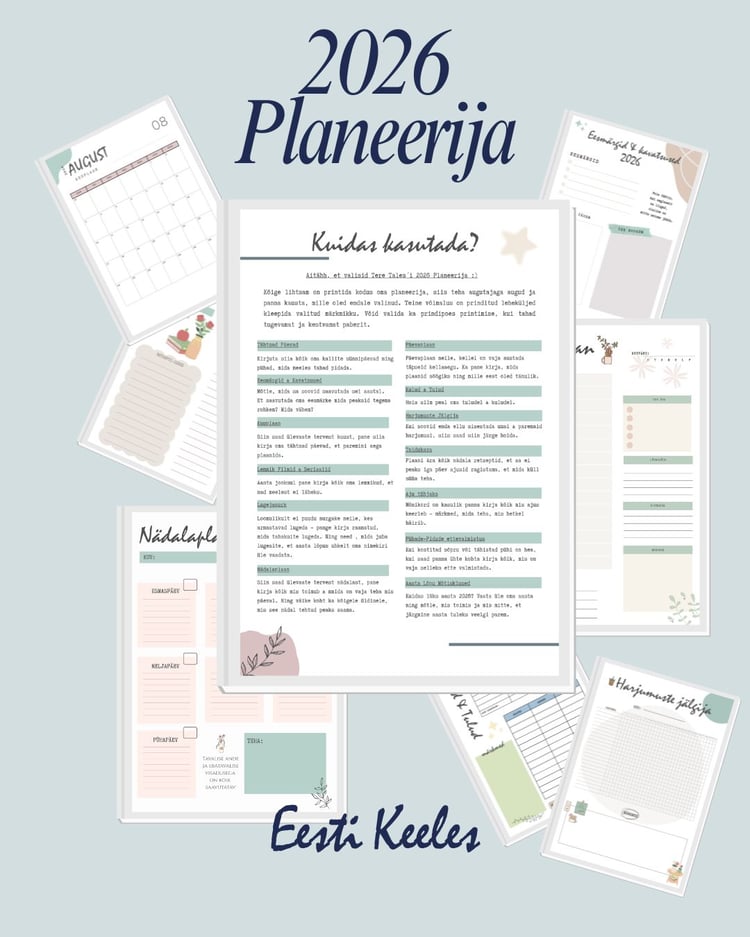 2026 prinditava planeerija lihtne versioon. Organiseeri oma elu, et võtta parim uuest aastast! Täielikult eesti keelne prinditav planeerija aastaks 2026 armsa ja lihtsa disainiga.