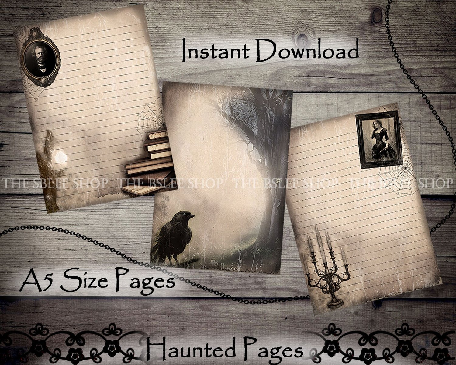 Haunted House Pages, Haunted Junk Journal, Horror Journal Pages, Halloween Digital Paper, Gothic Writing Paper, Gothic Junk Journal, Vintage