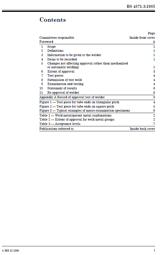 British Standards BS 4871-3 1985 Approval testing of welders working to approved welding procedure Part 3: Arc welding of tube to tube-plate joints in metallic materials