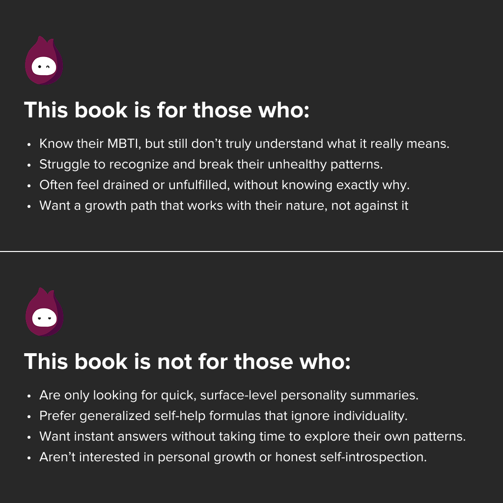 Each of the 16 MBTI personalities gets its own carefully curated content. We prioritize clarity at every step, while making sure every illustration earns its place in both meaning and quality.