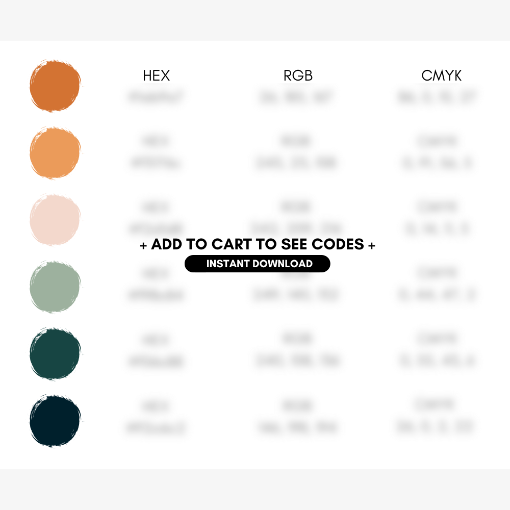 Enhance your brand's aesthetic with our Gourds Color Palette, featuring a harmonious blend of orange, peach, sage green, and dark green. Perfectly curated for the fall season, these vibrant yet earthy tones evoke the warmth and richness of autumn, making them ideal for small businesses looking to refresh their branding design. Whether you're updating your Etsy shop, creating seasonal marketing materials, or designing captivating social media posts, our color palette will help your brand stand out. With detailed Hex Codes, RGB, and CMYK values, this palette is easily adaptable for web and print, ensuring consistency across your website color scheme and brand packaging. Seamlessly integrate these seasonal colors into your Canva projects and watch your brand come to life with a touch of autumnal elegance. Elevate your business's visual identity with our Gourds color palette today!