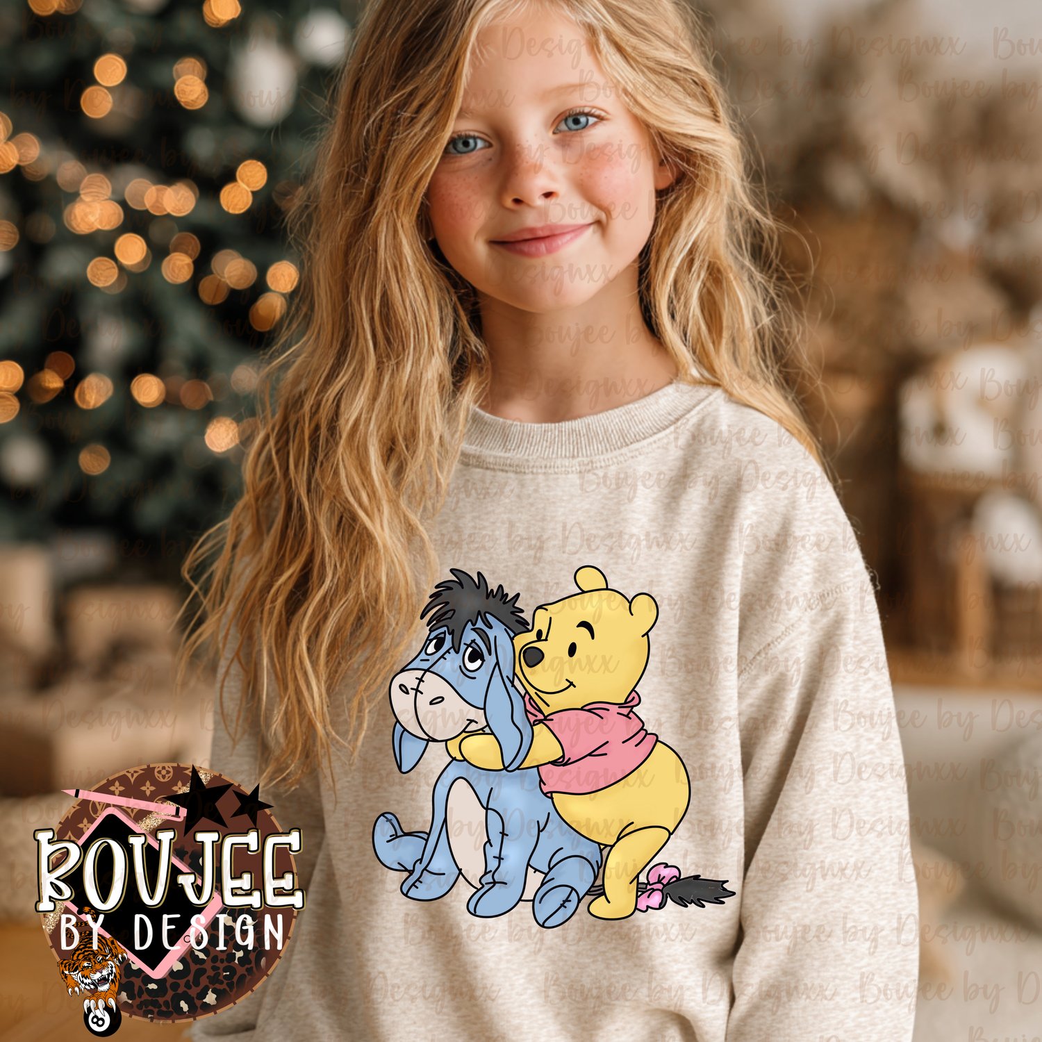 Bring a dose of sweetness to your crafts with this hand-drawn inspired Winnie-the-Pooh & Eeyore hugging design! Perfect for kids’ tees, pajamas, gifts, sublimation projects, stickers, and so much more.
