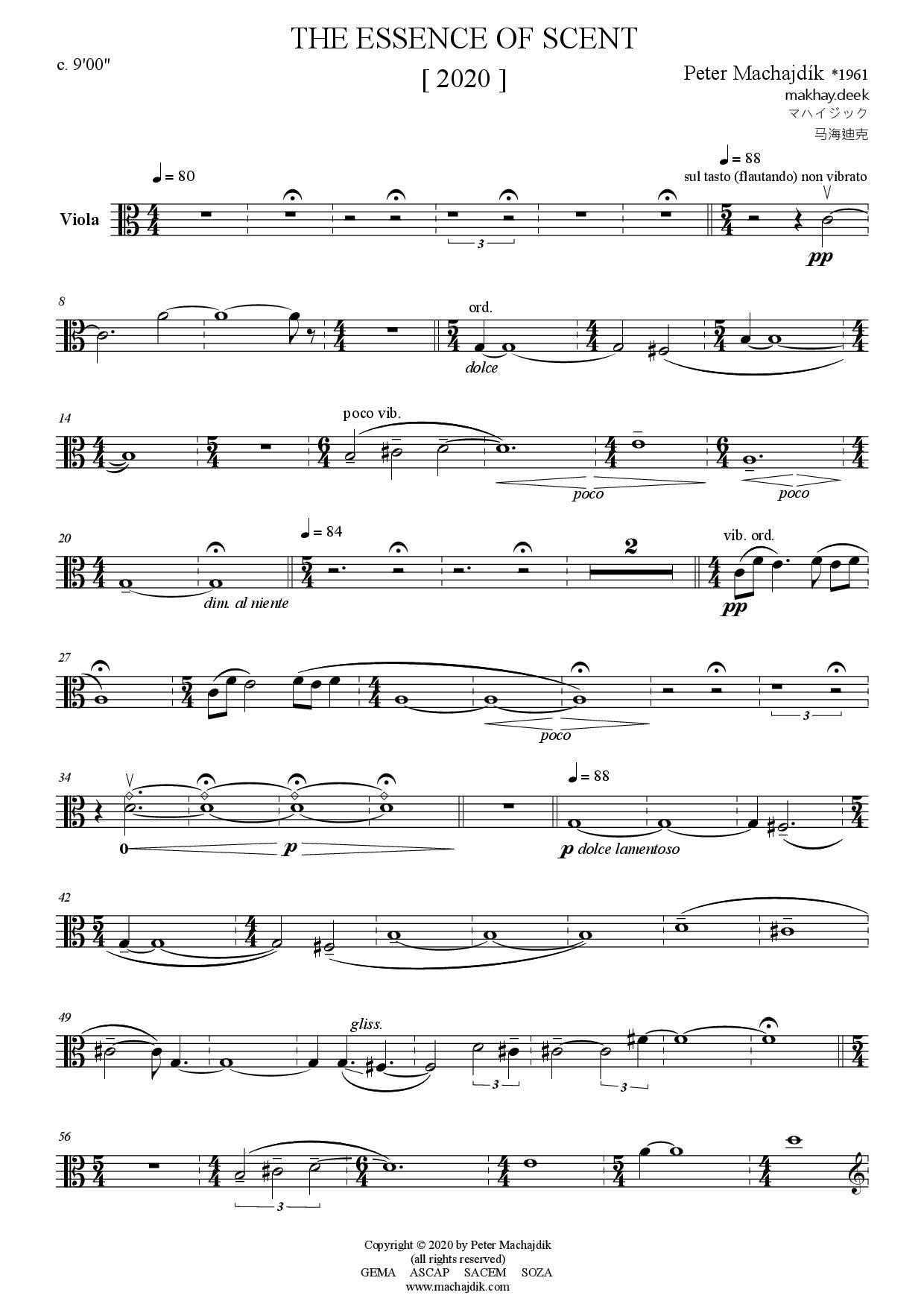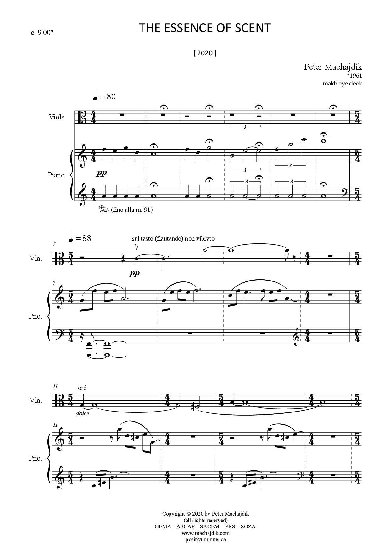 Peter Machajdík: THE ESSENCE OF SCENT for viola and piano (Digital Sheet Music) [score and parts]